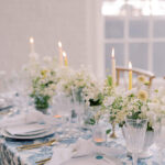 Every detail was chosen to reflect this balance; airy florals, flowing floral linens, a warm candlelight, and gold accent, all designed to create a sense of soft luxury. The result is a setting that feels fresh yet timeless, ideal for couples who want to bring a bit of the outdoors in an indoor space without losing that sense of that garden party intimacy.” – Jessica Jenelle, Jessica J Events