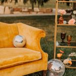 “We wanted summery colors, disco balls and subtle 70’s vibes throughout, all while giving each vendor who participated full artistic freedom to showcase their talents. The inspiration came from the feeling of summer love in the 70’s. We wanted the photos to mimic the ‘before technology vibe’ of just throwing the record player on and the couple just being totally engulfed in each other’s love. Living in the total present moment and letting summer love flourish. Alexis and Devon were the perfect couple for this because they are quite the love birds.” – Darian Smelser, Dare Visual