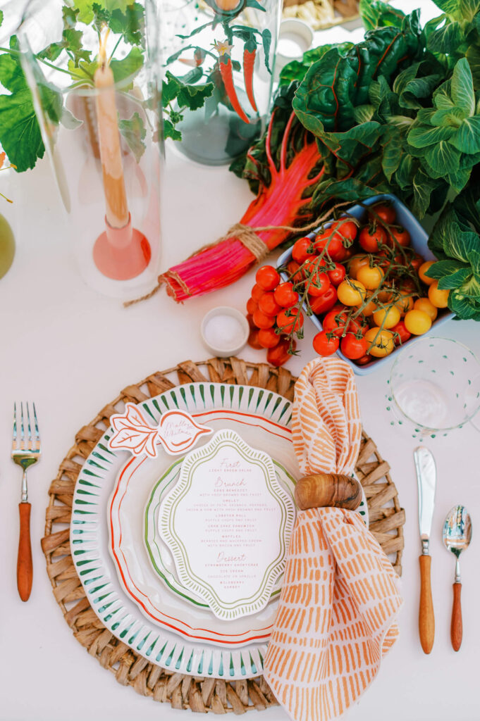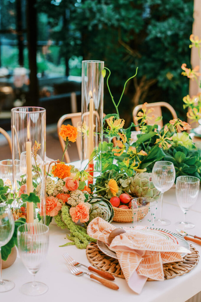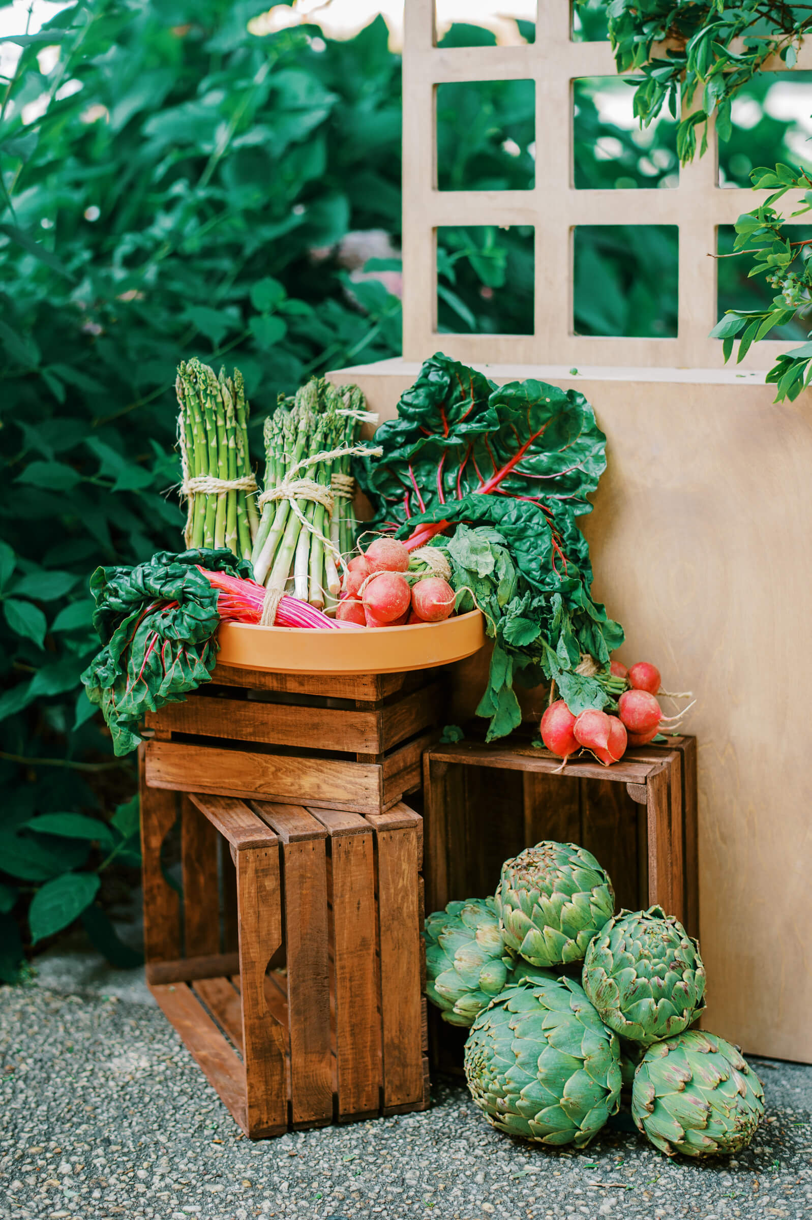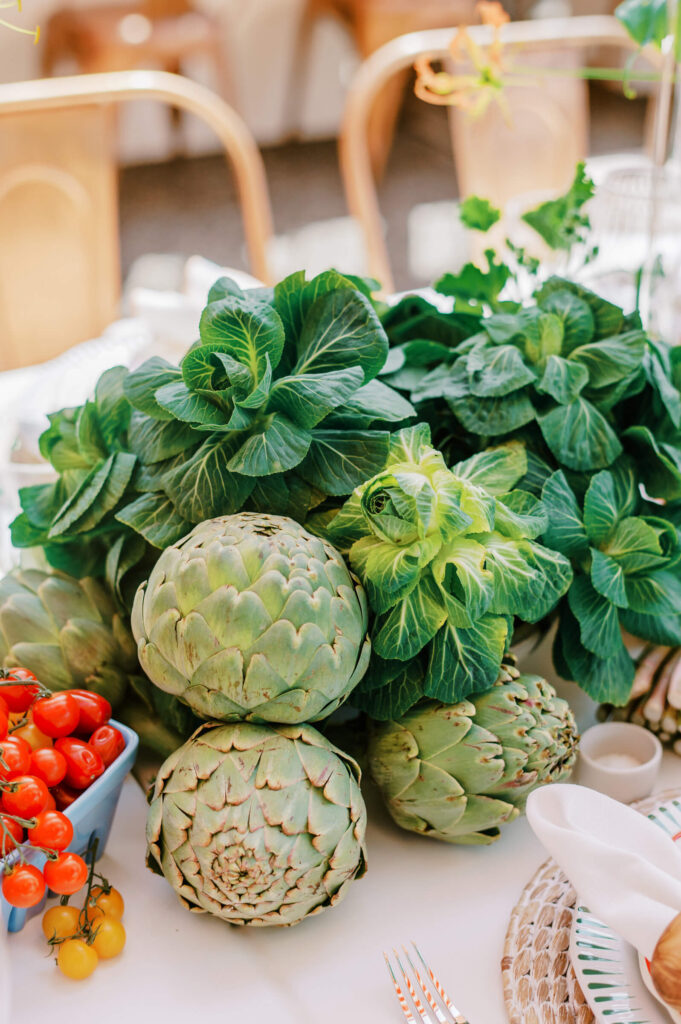 Vegetables and fruit on tablescapes were becoming popular, so we really wanted to focus on some elements that we hadn’t seen as much, including tomatoes, asparagus, and artichokes.