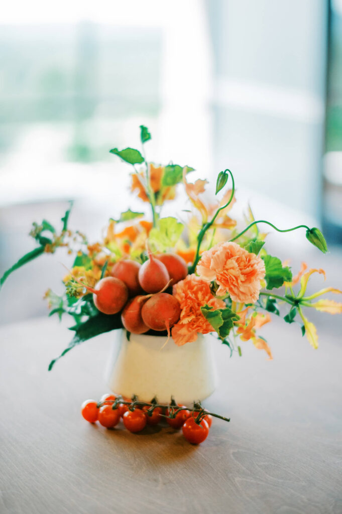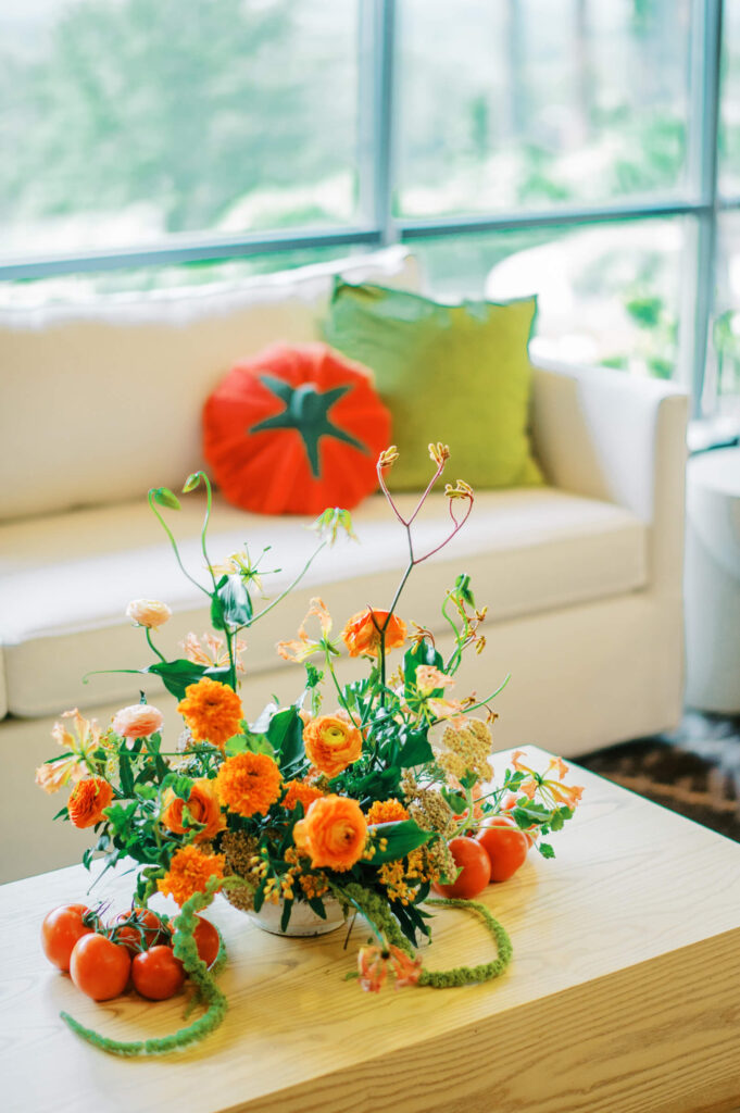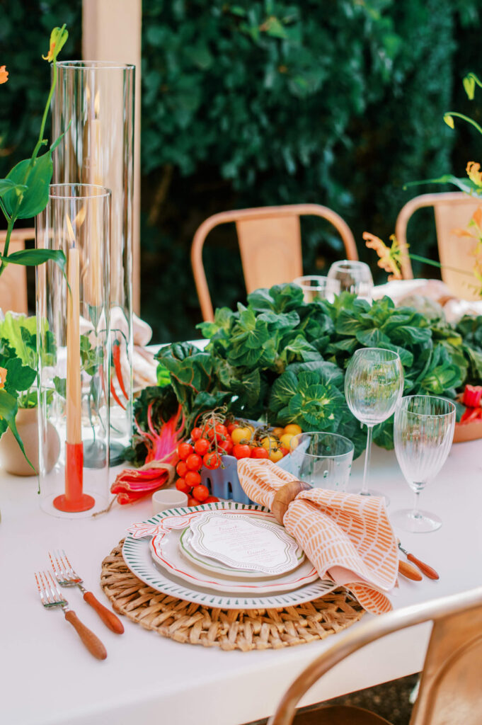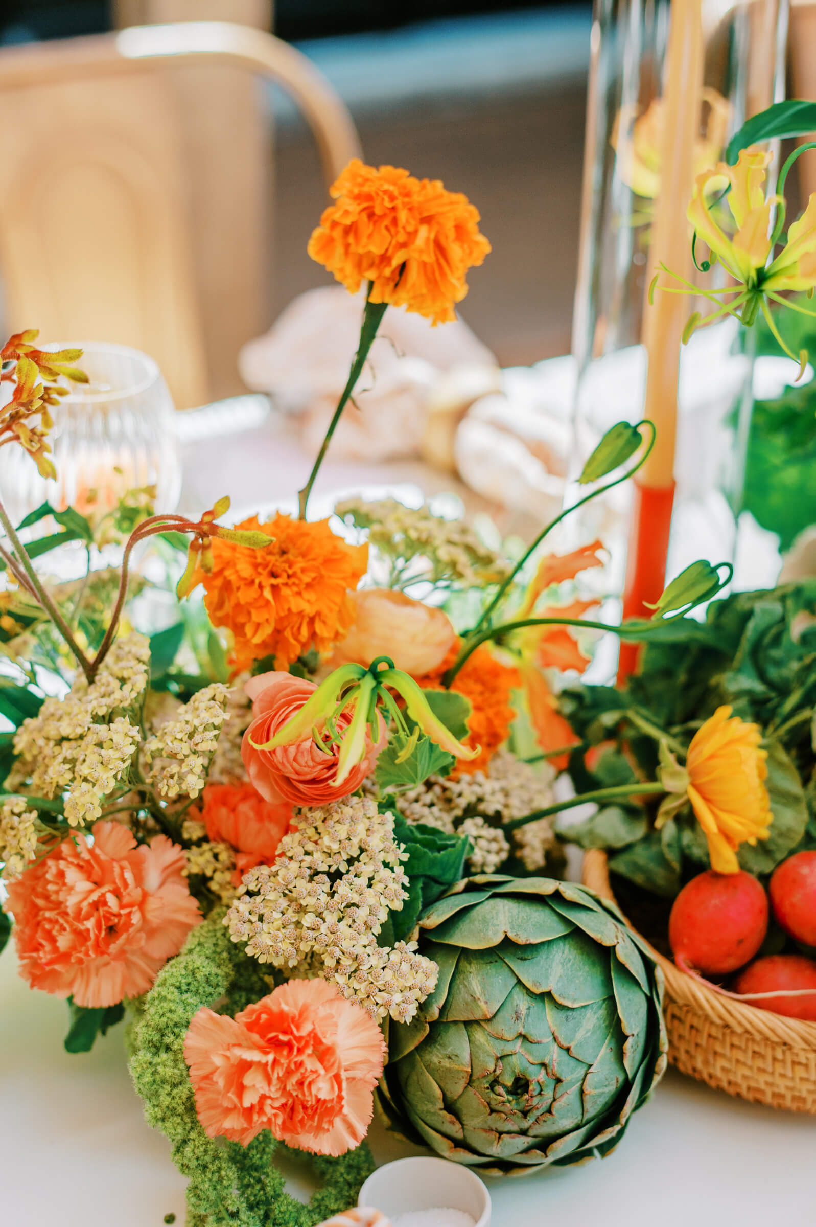 Vegetables and fruit on tablescapes were becoming popular, so we really wanted to focus on some elements that we hadn’t seen as much, including tomatoes, asparagus, and artichokes.