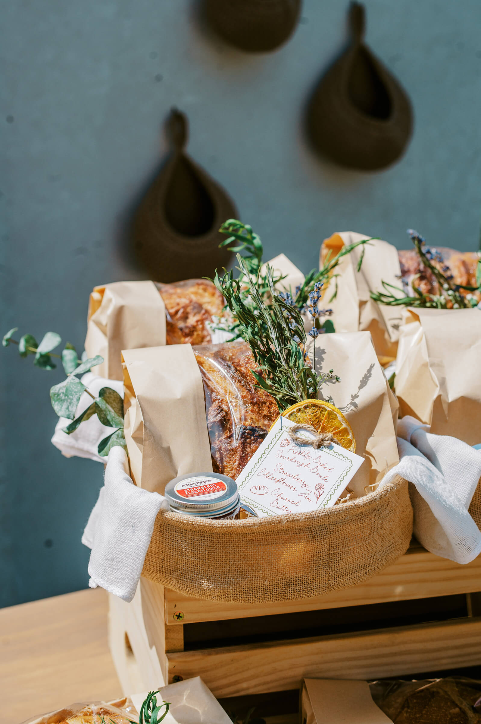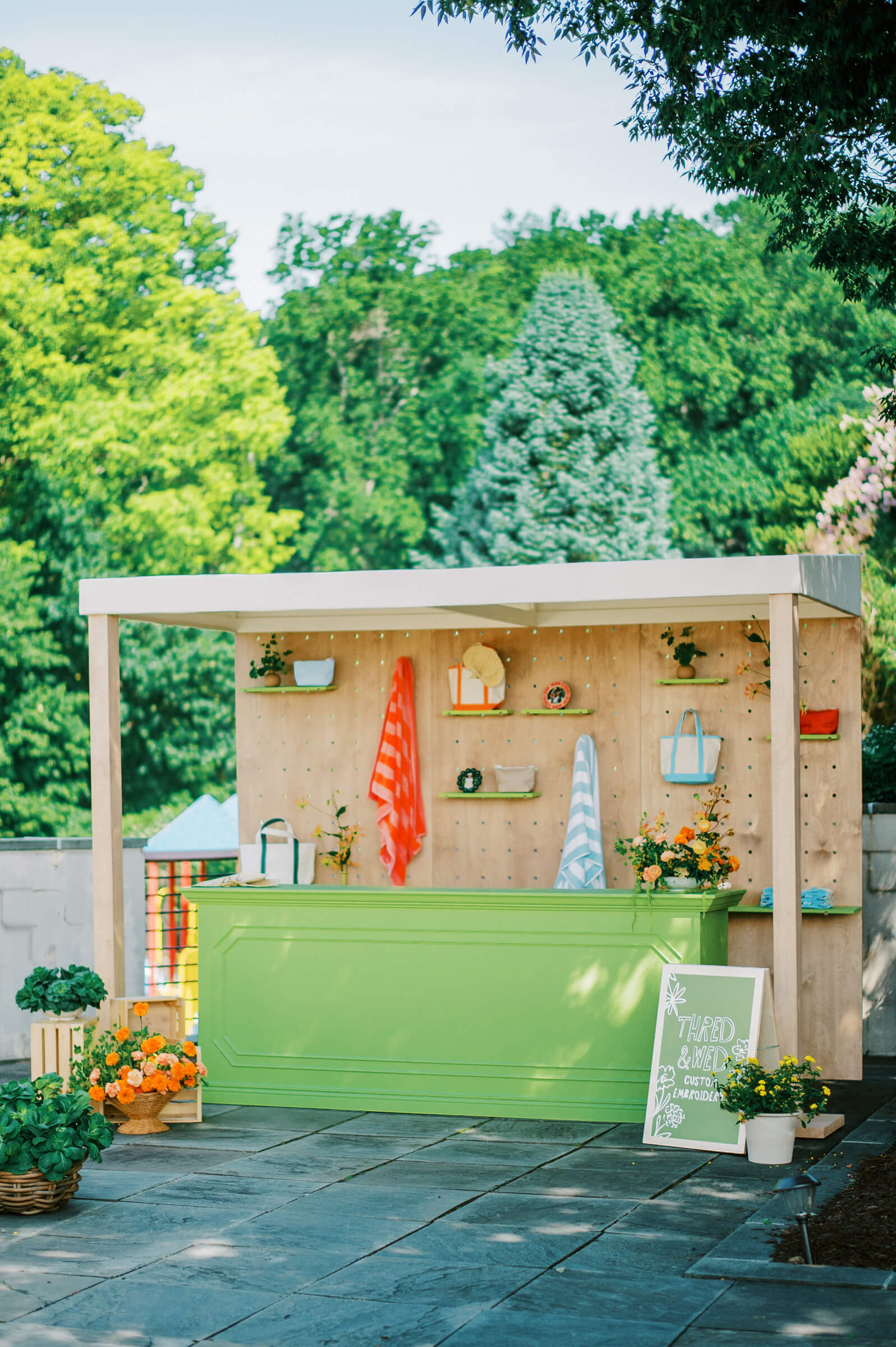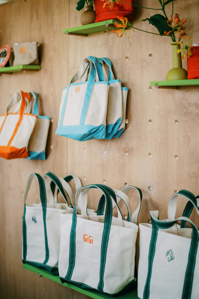 Before the celebration even began, each guest had been contacted to pre-select an item—from chic tote bags to beach towels. What they didn’t know was their chosen item would be custom embroidered on-site during the shower. Every detail was designed to feel like a trip to the prettiest market in town, complete with interactive, beautifully styled market stands that made the day as fun as it was unforgettable.