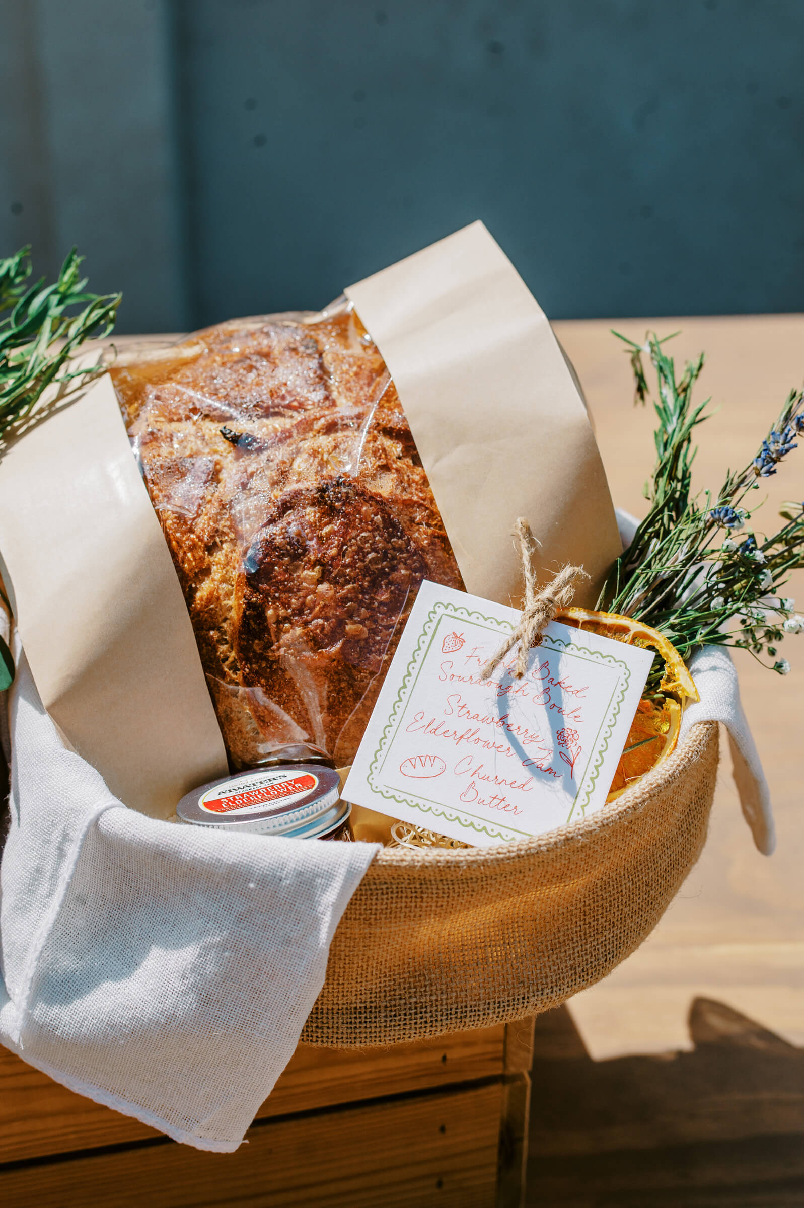Our goal was for guests to feel as though they were strolling through their favorite local market. We incorporated locally sourced products throughout—from the floral tablescapes to the accent pillows. One vendor at the market had drinks; one bread to take home; the other charcuterie and food; and, of course, the most popular, the embroidery vendor.