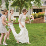 Chair by chair, table by table, we carried hundreds of pounds of rentals into the tent. The wind shoved at our backs, and the stinging rain nipped at our faces as we slowly transported an entire ballroom’s worth of furniture from a covered garage into the billowing walls of white sailcloth. My maid and matron of honor took the helm as a weary crew of sailors struggled to keep the figurative ship afloat. In between trips, I continued to check the weather forecast praying that our wedding day would be better than the rehearsal. A bottle of Tylenol and a dozen energy drinks later, we were finally finished—tables in neat rows, crisp linens in place, and a few sequined tablecloths glistening in the fading light of day. My poor bridesmaids—blisters, sweat, and all—retreated to the hotel to prepare for the rehearsal dinner. Hugh and I collapsed to the ground, dizzy with exhaustion and sporting a new definition for the pre-wedding workout.