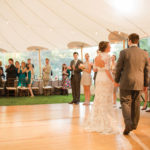 Chair by chair, table by table, we carried hundreds of pounds of rentals into the tent. The wind shoved at our backs, and the stinging rain nipped at our faces as we slowly transported an entire ballroom’s worth of furniture from a covered garage into the billowing walls of white sailcloth. My maid and matron of honor took the helm as a weary crew of sailors struggled to keep the figurative ship afloat. In between trips, I continued to check the weather forecast praying that our wedding day would be better than the rehearsal. A bottle of Tylenol and a dozen energy drinks later, we were finally finished—tables in neat rows, crisp linens in place, and a few sequined tablecloths glistening in the fading light of day. My poor bridesmaids—blisters, sweat, and all—retreated to the hotel to prepare for the rehearsal dinner. Hugh and I collapsed to the ground, dizzy with exhaustion and sporting a new definition for the pre-wedding workout.