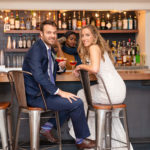 “My inspiration for this shoot came after watching the movie ‘Ingrid Goes West.’ I was inspired by the imagery, neon signs, mid century modern decor and just that desert feel. After a tour of The Motor House, which is a new Baltimore wedding venue, I knew I had found the place to make this concept come to life. We enlisted the help of Fleur De Lis Floral Design who added stunning garlands to our backdrops incorporating items like pheasant feathers, pink Anthurium, and King Protea. With the help and direction of Sarah Wockenfuss Photography we were able to create an ultra modern look perfect for the contemporary Baltimore couple.” – Kelly Brittingham