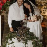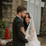 BEAUTY Nicoletta Minutella (makeup); Stephanie Minutella with Root 7 Salon (hair) CREATIVE DIRECTOR & SET DESIGN DETTA CUSTOM VEIL Anne Wagner FLORAL DESIGN Gott Efni and Jinnie For Your Day (Sicilian dinner party set and buffet, dining, window seat, bouquet); Gia Biscione, Belladonna Blue (after-party wine tower set) LOCATION Terra Maria Ruins MODELS Megaela Minutella and Logan McGrath PHOTOGRAPHY & ASSISTANT CREATIVE DIRECTOR T. Juliete Photography RENTALS Select Event Group WEDDING DRESS Amanda Ritchey Bridal Loft