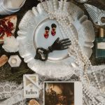 “Inspired by the old-world nostalgia of Sicilian summers, this shoot encapsulates the ripe sensuality and gluttonous, red wine-soaked overabundance depicted in Renaissance-era still life oil paintings. Seeped in Gothic imagery, this wedding editorial both breaks and pays homage to tradition with handmade textiles, heirloom treasures, tomatos, eggplants, figs, grapes, garlic, over-worn fabric, unpolished silver, dusk, an oil painting, and a humble feast.” – Nicoletta Minutella, DETTA