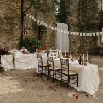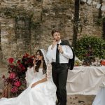 BEAUTY Nicoletta Minutella (makeup); Stephanie Minutella with Root 7 Salon (hair) CREATIVE DIRECTOR & SET DESIGN DETTA CUSTOM VEIL Anne Wagner FLORAL DESIGN Gott Efni and Jinnie For Your Day (Sicilian dinner party set and buffet, dining, window seat, bouquet); Gia Biscione, Belladonna Blue (after-party wine tower set) LOCATION Terra Maria Ruins MODELS Megaela Minutella and Logan McGrath PHOTOGRAPHY & ASSISTANT CREATIVE DIRECTOR T. Juliete Photography RENTALS Select Event Group WEDDING DRESS Amanda Ritchey Bridal Loft