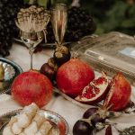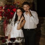 “Inspired by the old-world nostalgia of Sicilian summers, this shoot encapsulates the ripe sensuality and gluttonous, red wine-soaked overabundance depicted in Renaissance-era still life oil paintings. Seeped in Gothic imagery, this wedding editorial both breaks and pays homage to tradition with handmade textiles, heirloom treasures, tomatos, eggplants, figs, grapes, garlic, over-worn fabric, unpolished silver, dusk, an oil painting, and a humble feast.” – Nicoletta Minutella, DETTA
