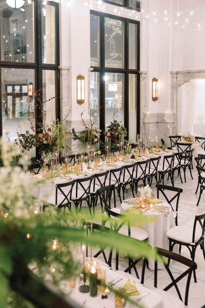 The Pendry’s industrial courtyard space in the heart of Fells Point is filled with cozy fireplaces and a dramatic row of trees, perfect for an unforgettable walk down the aisle. Host up to 340 guests for a reception in the Grand Ballroom, complete with arched windows and architectural molding. What’s special about it: Reserve a semi-private dining area at the Pendry’s Rec Pier Chop House for an after-party celebration.