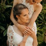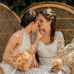 “Elopements are all about the small moments, the casual laughs, the simple elegance of two souls joining. When I set out to style this shoot, I wanted to focus on the tiny details that build a larger picture. I wanted to create a carefree moment that would inspire others. We decided to go with shorter dresses, boots for hiking in the woods, simple gold wedding bands, and dried florals. I think the best way to celebrate love is whatever feels authentic to you—and if that’s popping champagne in the woods, throwing your hair in braids, and cuddling up on a vintage rattan chair—then do what makes you happy.” – Sarah Middleton