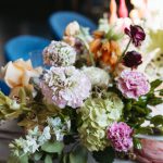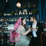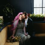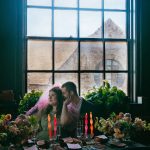 “We wanted to create a crisp citrus inspired tablescape inside the dark and moody Bluebird cocktail room. This is such an iconic spot in Baltimore and adding a pop of color and going completely counter to the theming of the bar makes for a dramatic and funky shoot.” – Sarah James