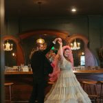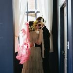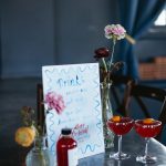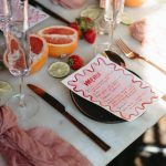 “We wanted to create a crisp citrus inspired tablescape inside the dark and moody Bluebird cocktail room. This is such an iconic spot in Baltimore and adding a pop of color and going completely counter to the theming of the bar makes for a dramatic and funky shoot.” – Sarah James