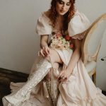 “In quarantine I fell back in love with books and the romance of the classics. With the current trends of cottagecore and Princess Diana dresses re-circulating in the media, I thought it would only be fitting to bring an elopement to life with those same elements. Our bride, Madi, looked like she was straight out of a storybook, and we incorporated elements of the European countryside and a muted spring color palette to bring our vision to life. I wanted the installation portion to be reminiscent of freshly hung linens on a clothesline. The House of Elliott lace boots complimented the gown perfectly and helped to create this stunning shoot.” – Sarah Middleton