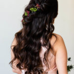 “The inspiration for this styled wedding was to incorporate as much bold, moody, contrast-y colors and texture with a little pop of brightness here and there. I wanted to create a wedding that wasn’t matchy-matchy, even though those weddings with every little detail coordinated and choreographed are gorgeous, it honestly just doesn’t always feel like real life and comes across a little stiff. Weddings should be fun and should show off personality. This styled wedding is everything that I dream of for my business’s brand and aesthetic. I worked with a group of incredible vendors who took my loosely put-together vision and brought it to life. The Flower Shop KI created a bouquet that had dark and moody tones but with so many different styles of flowers, it had a huge element of texture. (I even separated and dried the bouquet and it makes for a beautiful delicate piece to I am still using as décor.) Pretty Little Wedding Co. created a tablescape with black and white geometric patterns, simple goblets, and gold and black dipped silverware on top of Honeywood Farm Table Rentals gorgeous wooden table with the white dipped legs and geometric metal chairs. Your Adventure Designs created the menu, invitation suite, and place cards in gold with a white background and smoky burnt (actually burnt!) edges. Annapolis Bridal dressed our bride Ashley in a simple white lace gown, a feminine pale pink gown for the maid of honor, Alexa, and the groom, Nolie, and best man, Frank, in deep blues and grays with hints of maroon. Their looks were pulled together by Maskcara Faces by Chelsea and Pins and Curls Hair Artistry. So, not only was this a romantic set-up for a faux wedding, the best man model reached out to me a week or so prior to the date and asked if he could use the end of our styled wedding as the proposal to his girlfriend (the maid of honor model.) The bride and groom are her brother and sister-in-law, so it was already a family affair and who better to have as witness to your proposal than your best friends? Of course, it went absolutely perfectly, and our mock wedding ended with a real-life engagement!” – Sara Thomas, Willow Roots Photography