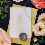 “For this shoot, we wanted to explore a maximalism meets coastal Mediterranean dinner party aesthetic by layering pops of color, patterns and light. The bold palette was influenced by the warm tones of golden hour with the warmth of the ceremony floral structures. Lamps, both on the table and hanging above, and candles in tall, ribbed glass helped create a romantic and intimate dinner party feel. By layering in details like fresh produce, individual strands of olives and tinned fish in varied, colorful labels, we were able to bring our opulent, yet playful inspiration to life. The Loom was the perfect venue to host since there is so much flexibility in how the different spaces can be used as well as variety in light, texture and wall color.” ~ Naomi Cataldo, Urban Row Photography