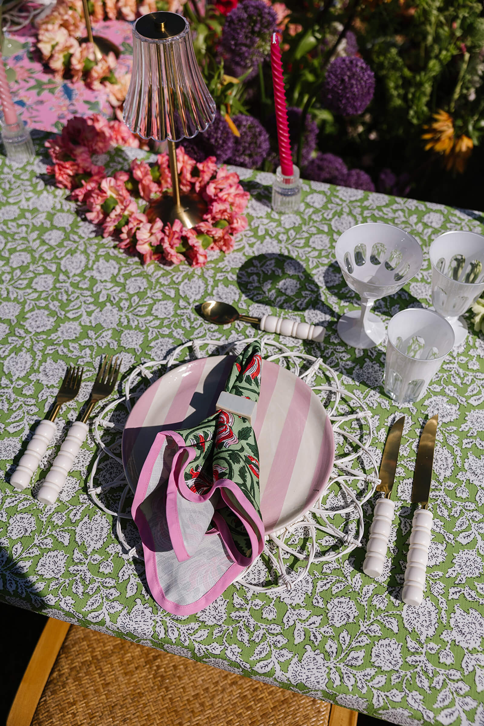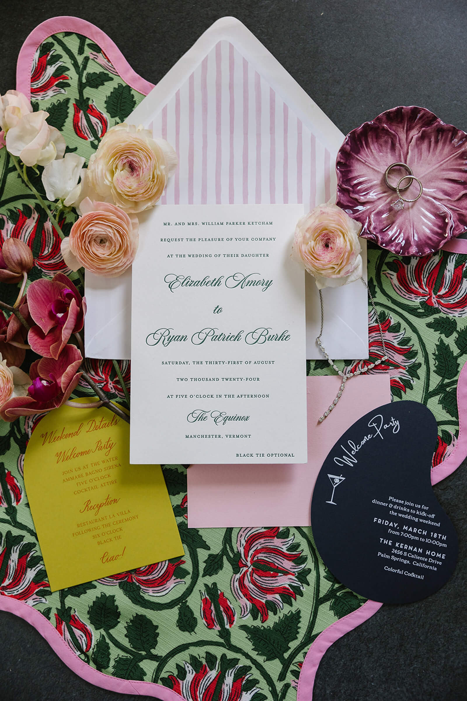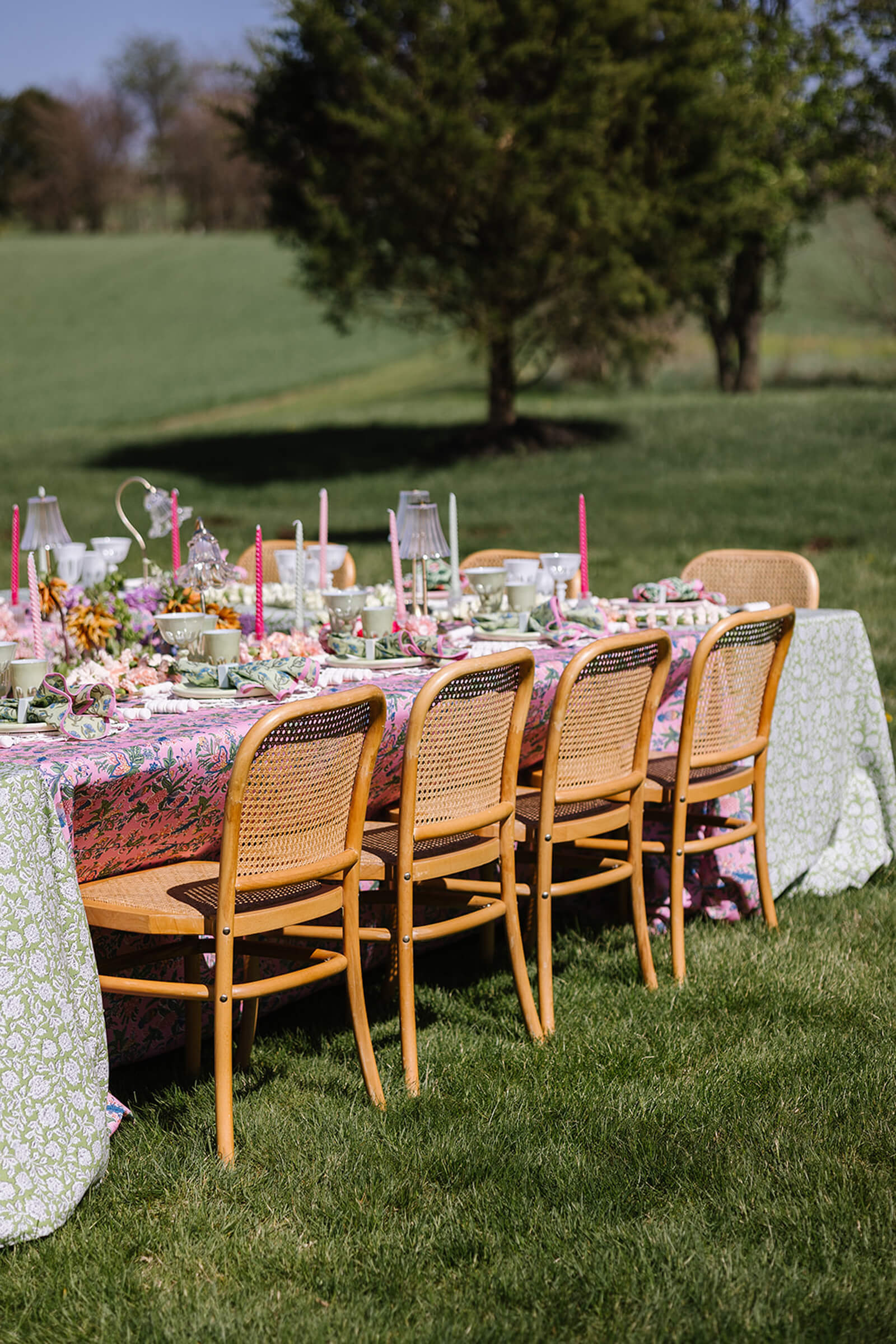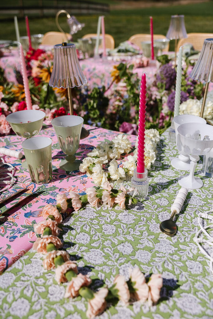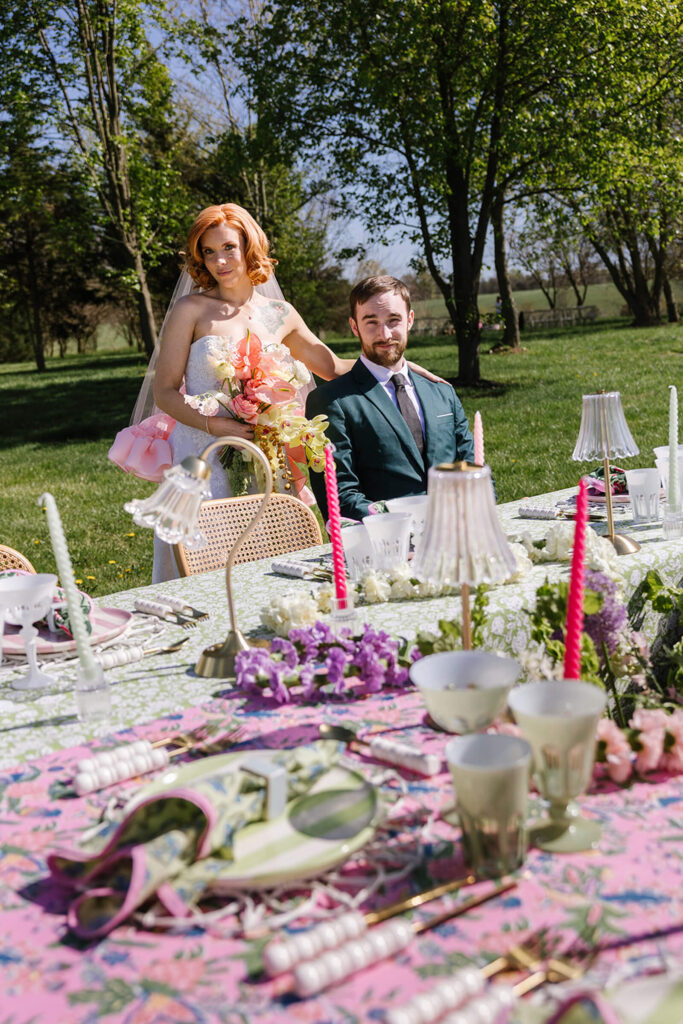 Our shoot was inspired by all things sugary, colorful, and joyful bringing together the playful spirit of dessert, vibrant color, and celebration. The name is both a nod to the abundance of sweets woven throughout the design and a lighthearted reminder that life after the wedding is just as sweet. The concept embraced bold pattern mixing, layered textures, and a garden of florals running through the center of the reception table to create a whimsical, immersive setting.