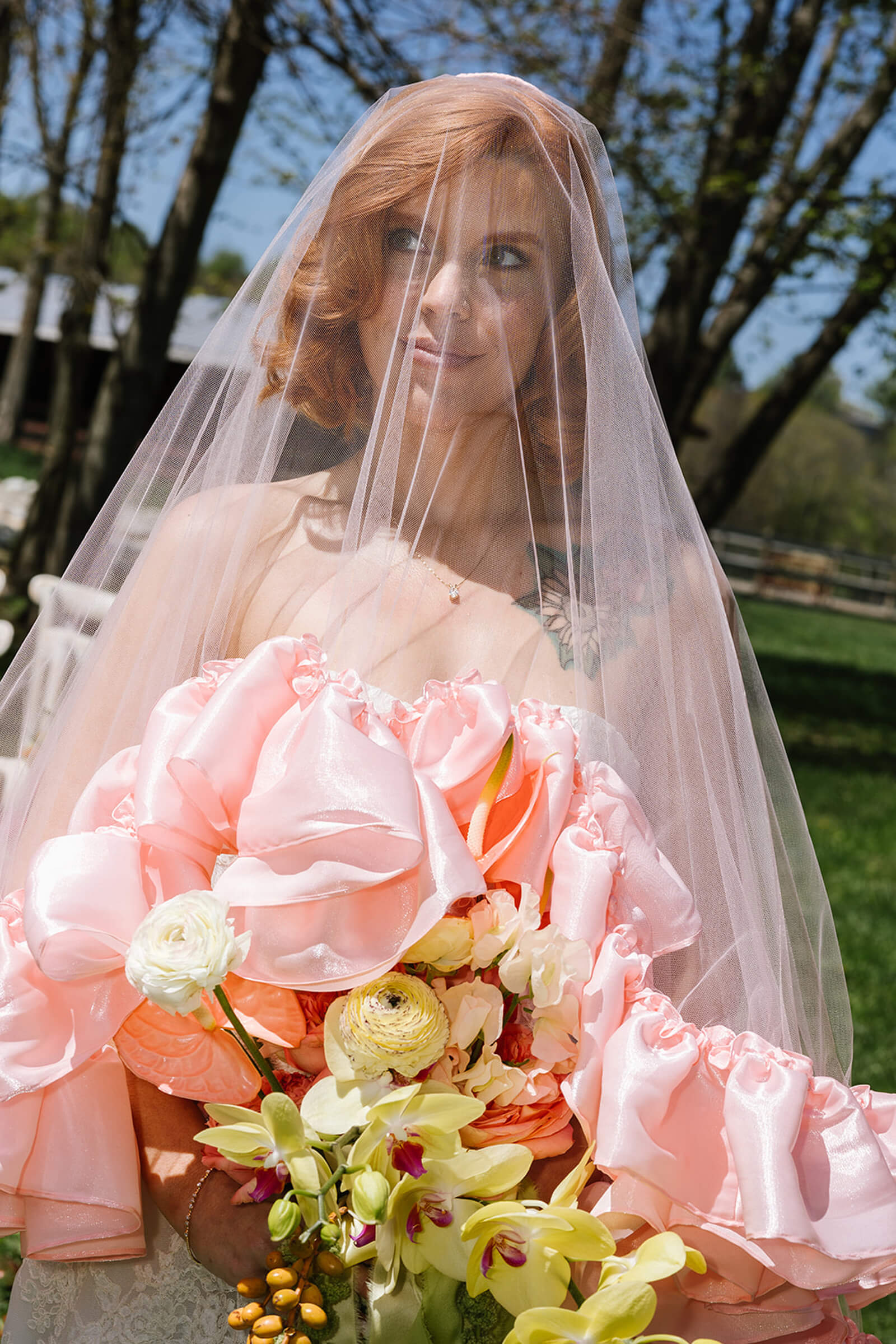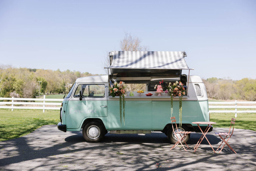 BEAUTY Hollys Hairdos (hair); Lux By Lily (makeup) BUS Buggy the Bus CUSTOM STAGE & LETTERS Sarah Marie Events DESSERTS Sweets By Caroline, Taste This Cake, and Royal Bagel Bakery DRESSES Fairytale Bride FLORAL DESIGN & DESIGN CONCEPT East Tulip HIGHTOP LINENS Select Event Group JEWELRY Colonial Jewelers LOCATION Comus Farm MODEL Shelby Darling PHOTOGRAPHY Urban Row Photography PLANNER & DESIGN CONCEPT Sarah Marie Events STATIONERY Bethesda Fine Stationery TABLETOP RENTALS & LINENS Something Vintage VEILS Madison Chamberlain VIDEOGRAPHER John Braden Films