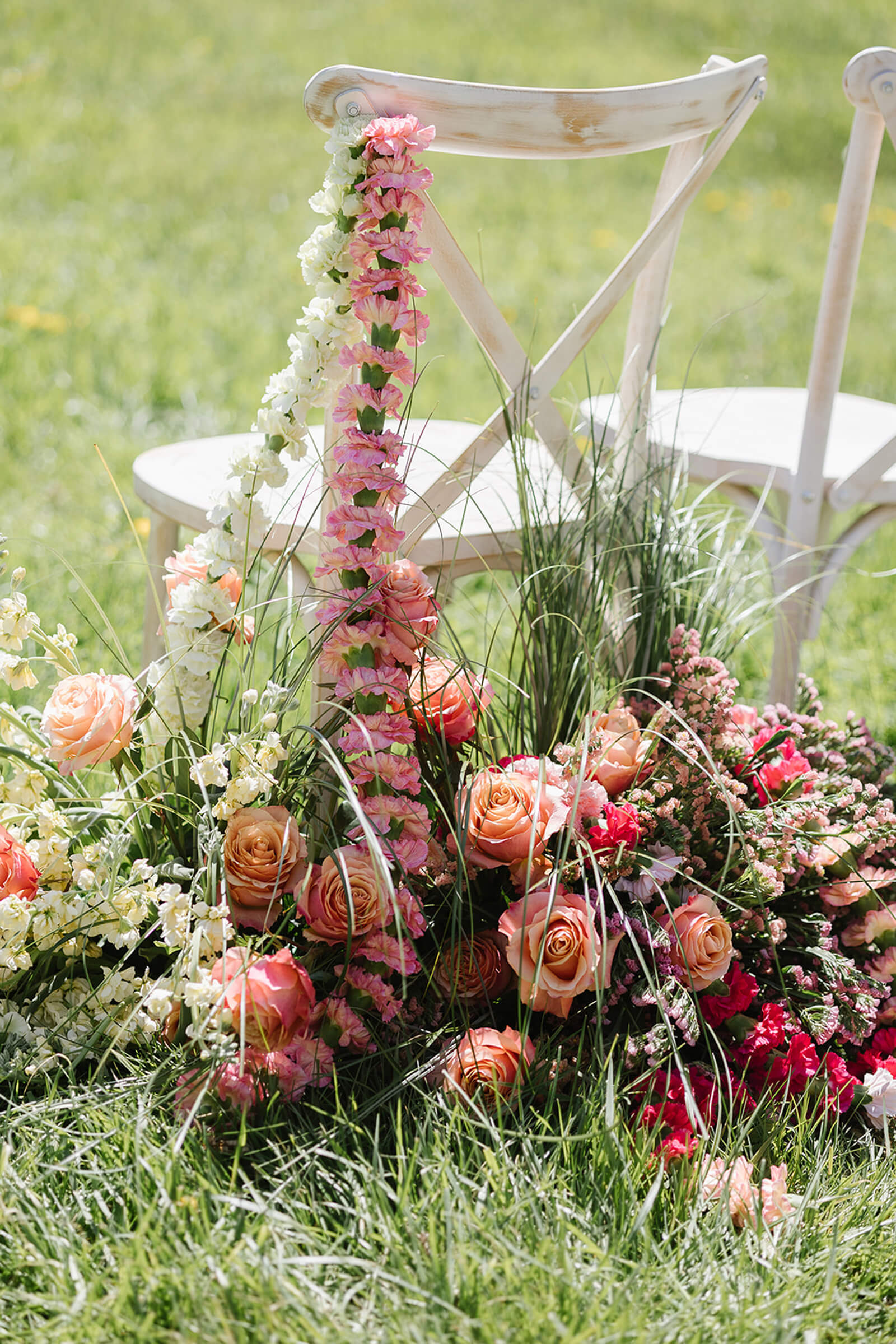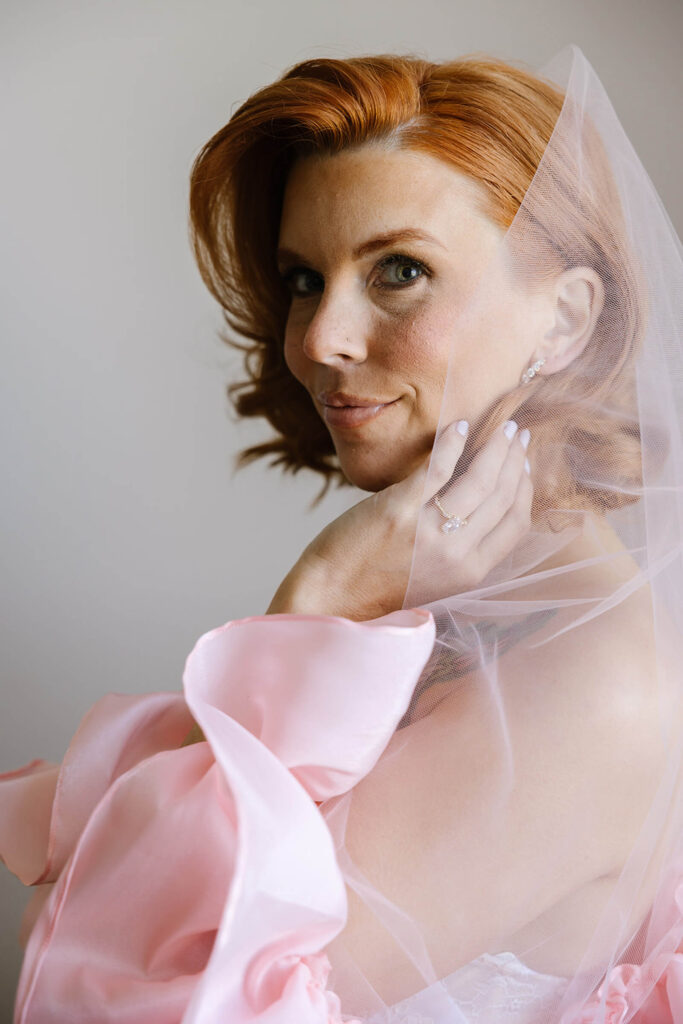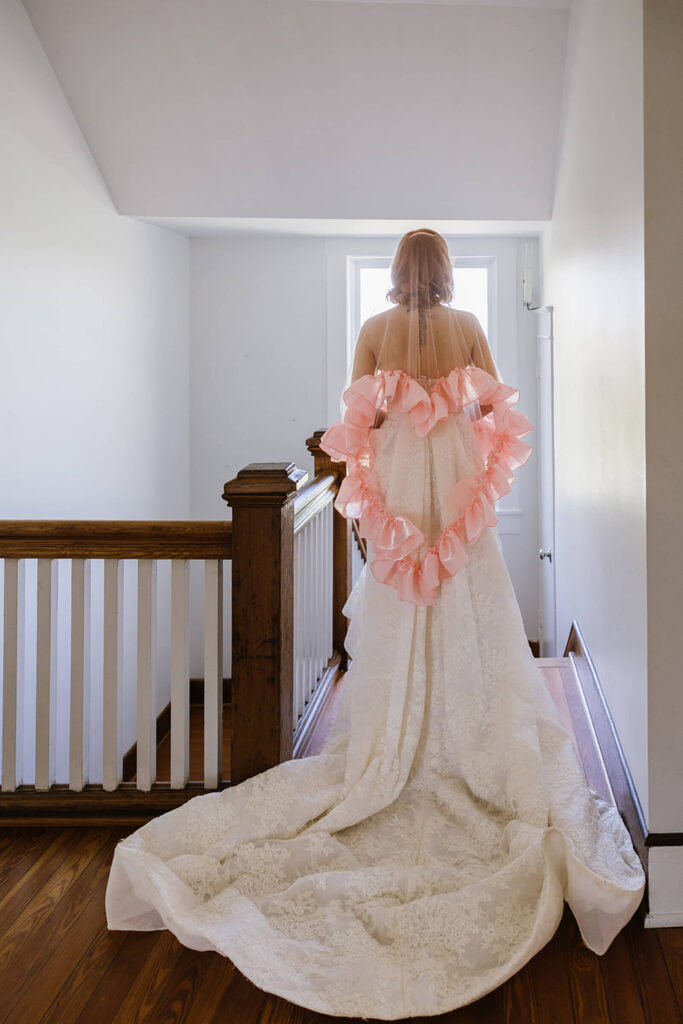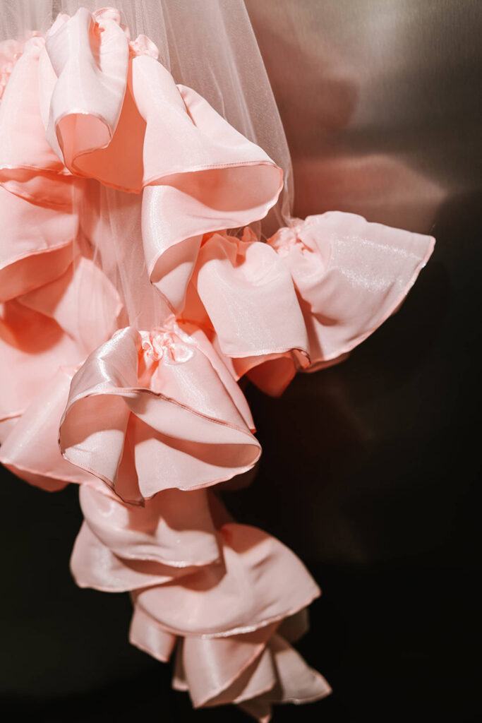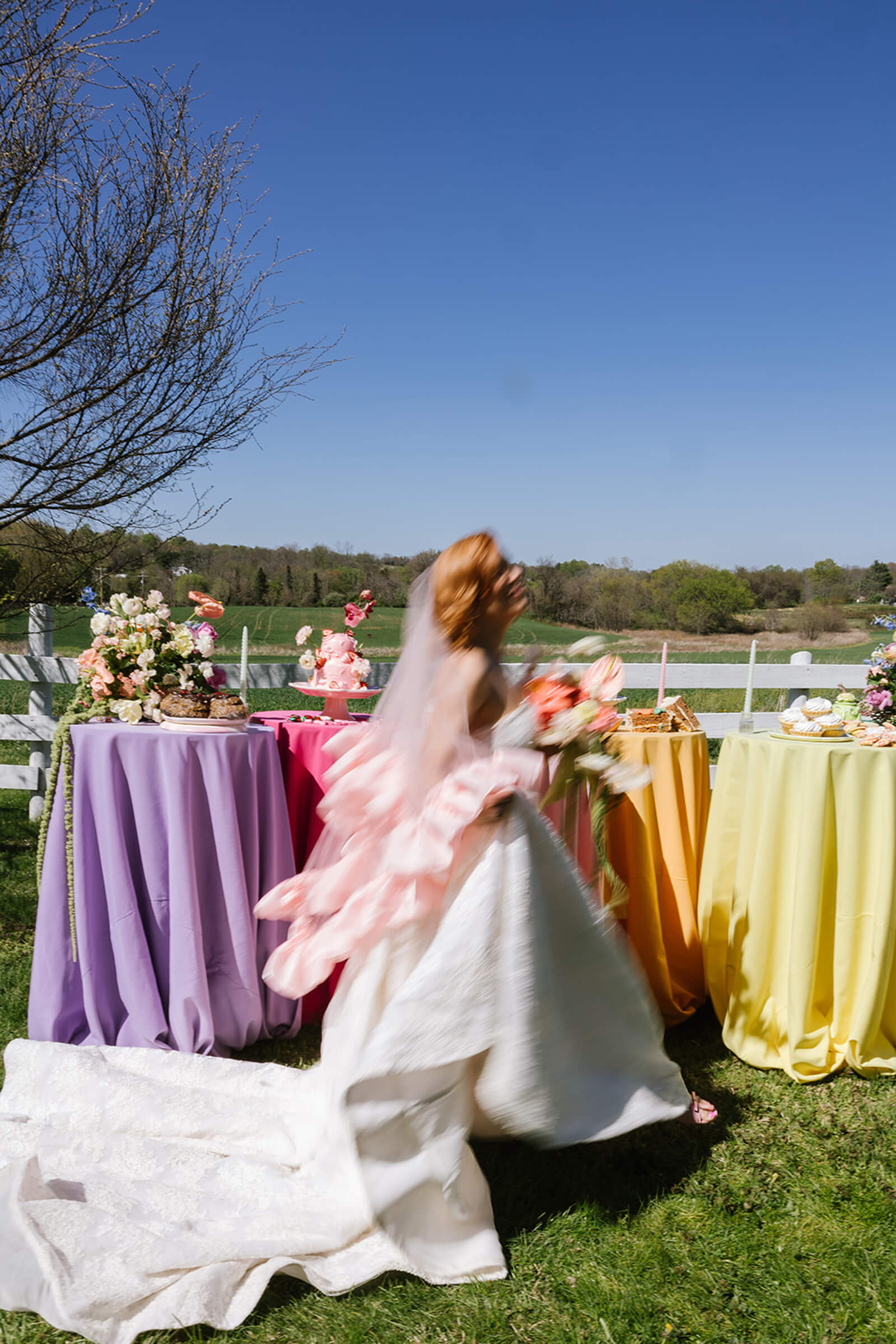 A baby pink platform stage added a soft yet striking focal point, while non-traditional veils brought a modern, fashion-forward twist to bridal styling. The rainbow caterpillar table served as a buffet of treats, reinforcing the theme through color and indulgence.