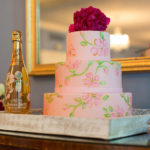 My inspiration for this shoot came from the beautiful hand-painted Perrier-Jouët champagne bottle. The soft blush color of the champagne paired with the beautifully illustrated florals set the stage for the design and color palette of the shoot. We then sourced the perfect blush colored dress from Garnish Boutique. The Anne Barge Luxembourg dress was feminine, elegant, a touch on trend but still classic, and perfect for this shoot. We partnered with The Tidewater Inn as our venue and shot in their courtyard and Crystal Room. The Tidewater Inn is a quintessential Eastern Shore venue with grace, character, and a refined elegance and I wanted to show this throughout.