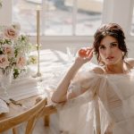 Beauty Brushed Beauty Floral Design Kate Truhlar Floral Linens Select Event Group Location Sonne Studios Model Sophia Barone Photography Cathryn Fink Photography Planning Social Graces Events Props Janda Florist & Sonne Studios Rentals Pretty Little Wedding Co. Wedding Dress Hadleigh by ElayaVaughn, the bridal company of former Project Runway contestant Kate Pankoke