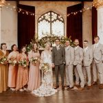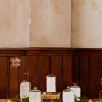 There was a rainy (but romantic) proposal in Loch Raven Reservoir in May 2021, and then it was time to start planning their own wedding. As a wedding vendor, Kate had seen a lot of venues, but they quickly settled on the 2640 Space in Charles Village because “it looked European, and like the Great Hall in Hogwarts—Kate is a massive Harry Potter fan,” explains Tony. The location was perfect for what they were picturing: lots of long tables with candles, and warm peach and golden tones. They dyed cheesecloths to be used a table-runners, worked with Violet Floral Designs to make heirloom cloches for dried-floral table displays, and used honey-colored plates, gold silverware and a modern glass to finish the look. “We wanted things to feel ethereal, with a touch of retro,” says Tony, who, when he’s not assisting Kate with her photography work, is a producer/editor for Maryland Public Television and a wedding officiant.