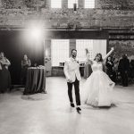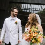 The entire day at The Butterfly Room in Pigtown was filled with lots of warm earth tones and special touches, like a Taharka Brothers ice cream truck instead of a wedding cake and a horde of flower girls. “We have so many children in our family, so we opted for a flower mob of 14 kids, ranging from three-years-old to 13,” says Ali. They were followed by Arlo as the ring bearer. “With his vital role in our engagement, it only seemed fitting to have him bring the rings down the aisle.”