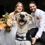 While back in Ali’s hometown of Houston over the holidays in 2022, Moss suggested they take their dog, Arlo, on a walk. When Arlo ran off into the bushes, as he frequently does, Moss, a health-care technology professional, took the opportunity to attach an engagement ring to his collar. “It was a rare below-freezing day in Houston, so after I said yes, we headed straight home to warm up,” says Ali.
