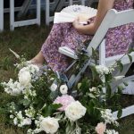 What Was Unique and Special About Your Wedding Day Each guest received a welcome box filled with wedding essentials (Advil, Altoid mints, and coconut water for hydration), and some of the bride and groom’s favorite snacks (Taiwanese lychee jelly and hot Cheetos). Custom fans were set out for guests (that featured the couple’s wedding crest)) so that the guests could stay cool. Instead of numbers, the wedding reception tables were denoted by names of some of Angela and Grant’s favorite restaurants throughout the years. Food has always been a huge part of their relationship, and they had curated a list of top restaurants from Evanston, Chicago, Maryland, DC, New York, and Taiwan. On each reception table, the couple included the name of a restaurant, a custom sketch of the restaurant’s exterior (done by the bride), a shared memory the couple had of the restaurant, and some of their most-loved dishes. Another detail that the couple incorporated was a hand-painted tray the bride’s mom made. During the ceremony, one of the groomsmen and the groom’s brother-in-law helped pass out programs from this tray—for the bride, this was particularly special because her mom had brought the tray all the way from Taiwan to be part of their day.