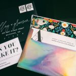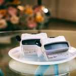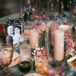 “We don’t take ourselves too seriously and we wanted our wedding to reflect that, so we incorporated elements of high camp, some cheeky dialogue on the stationery, and plenty of references to our favorite show, RuPaul’s Drag Race, to keep things light,” says Ashley. They even made a handmade “Guess Who?” board for cocktail hour that featured their favorite drag queens from the show. There were retro viewfinders sprinkled throughout, filled with pictures of themselves and their dog, Sansa, and a campy pink lip phone for guests to leave them messages.