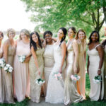 Beauty Bridal Hair by Kimi Collins Bridesmaids Lulu’s Cake Brian’s grandmother, Shirley Giunta, made our cake Caterer Garrison Catering Flowers DIY by the bride, her mother, and mother-in-law. Groom and Groomsmen River Island from Asos Honeymoon We took a road trip through Italy, visiting Rome, Florence, the Amalfi Coast, and Naples Invitations Jessica Langley at White Coffee Lettering Location St. Stephens Catholic Church and the backyard of the groom’s parents Music John Puzzo Officiant Father Larry at St. Stephens Catholic Church Photographer Kimie James Videographer Jon Sham Transportation Father of the groom’s vintage 1938 Buick Sedan Wedding Dress Bridal Elegance
