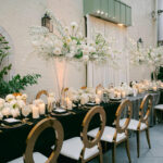 The two also wanted to celebrate their heritage. Ayanna’s family is from Anguilla and Dominica, two small islands in the Caribbean. “We invited a moko jumbie—an entertainer on eight-foot stilts—who danced the night away at the reception,” she says. They also designed custom flags for their guests to wave during the reception, a cherished tradition at Caribbean parties. “We also included the Texas state flag for guests to wave as they danced, honoring Craig’s Texan roots,” says Ayanna. “Together, these elements turned our celebration into a joyous blend of our backgrounds, making it a day filled with love, laughter, and cultural pride.”