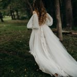 One thing that did not change was Maire’s vision for her wedding day. “I love French Baroque architecture and wanted to bring elements from that, namely gilded gold accents and ornate floral designs, to our outdoor setting.” The result was a complete transformation of her parent’s backyard into a magical, ethereal, forest wonderland—like a scene from A Midsummer Night’s Dream.