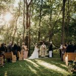 One thing that did not change was Maire’s vision for her wedding day. “I love French Baroque architecture and wanted to bring elements from that, namely gilded gold accents and ornate floral designs, to our outdoor setting.” The result was a complete transformation of her parent’s backyard into a magical, ethereal, forest wonderland—like a scene from A Midsummer Night’s Dream.