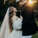 Thanks to a special dispensation from the Archdiocese of Baltimore due to COVID-19 concerns, they were able to have a Catholic ceremony outside—usually a no-no. They set up an outdoor cathedral, complete with wooden pews, and Wes, now a Second Lieutenant in the United States Marine Corps, waited for Maire at the end of the grassy aisle in his Marine-sanctioned uniform.