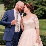 Beauty Su-Shan Lai, Starshine Salon, Philadelphia PA Bridesmaids Hearts and Found, from Etsy Caterer Our caterer’s food truck business unfortunately did not survive the pandemic, so we did what we do best and got creative. We decided to improve on the menu we served for our “minimony” in 2020, only on a much larger scale. Fried chicken was again provided by Royal Farms, the bride and ladies of the bridal party lovingly made all the side dishes, and the groom proudly made over 20lbs of slow-cooked pulled pork barbeque. It was a team effort to prepare huge quantities of classic picnic fair, and our hard work paid off because the food was a big hit with our guests. Dessert Pies by Wilson’s Farm Market, Flavor Cupcakery, and elegant cutting pie by Pastry Chef Alex Chalk. Flowers Bouquets and Boutineers by Sheila Smith Wedding Event Floral Design. Amber and her mother put together the decorative arrangements with some additional help from our good friends at Grier Nursery. Groom and Groomsmen Custom tuxedo by Suit Supply Invitations We designed our own invitations together and had them custom printed by uprinting.com. Amber sketched a floral design and Jeff laid out the text and got it ready for print with some digital magic. Location Grier Family Estate, Harford County Music Walsh Kunkel Trio (cocktail hour); Uvell Reaves with UR Entertainment (reception) Officiant Reverend Ken Tipton Photographer Marlayna Photography Wedding Dress House of Mooshki Bridal