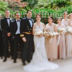 Wedding Design Inspiration We wanted our wedding to have an elegant and timeless feel. The ornate architecture at The Belvedere was the perfect backdrop for the affair. The groomsmen wore classic tuxedos and the bridesmaids all wore different champagne-colored dresses. Muted shades of ivory and mauve were chosen for the bouquets. The head table was strewn with a long green garland, mercury glass tea lights, and copper accents in the form of agate slice place cards and wax seals on the dinner menus. Our wedding invitations incorporated copper and forest green tones with an illustration of The Belvedere.