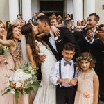 In the end, Katie and Eric got the exact day they wanted, with even the weather cooperating: rain while getting ready, sunshine during pictures, rain during the indoor church ceremony, sunshine during the outdoor cocktail hour, rain while under the tent during the reception, and then the most beautiful purple and pink sunset during dinner. “We couldn’t have been luckier,” says Katie. But even if it had rained all day, it wouldn’t have mattered, says Katie. “Don’t worry about every little thing. Everything will play out how it should and, in the end, it’ll all be perfect.”