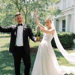 Minutes into the party, Conor accidentally stepped on the train of Brittany’s dress, ripping the bustle. Without missing a beat, Brittany quickly slipped into her short, party dress she was planning to change into a few hours later—a smile never leaving her face. “Guests will feed off the couple’s energy,” she says. “If the couple is having a great time, so will everyone else.”