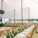 BEAUTY Air Hair and Makeup BRIDESMAIDS Various brands including V. Chapman, Monique Lhuillier, and Sachin & Babi CAKE Ruby’s Cake Shoppe and Pastries CATERER Royal Oak Catering FLORAL DESIGN Days of May GROOM AND GROOMSMEN Suitsupply HONEYMOON Italy, planned by Heidi Burke Travel LOCATION Chesapeake Bay Maritime Museum, St. Michaels MUSIC Millennium from Washington Talent Agency OFFICIANT David Teich, friend of the couple Rentals Pretty Little Wedding Co. Stationery Designed by the bride. Tent Eastern Shore Tents TRANSPORTATION Chesapeake Charter (guests had the option to arrive via water taxi); St. Michaels Harbor Shuttle WEDDING DRESSES Mira Zwillinger gown from Mark Ingram (ceremony); Galvan London (reception) WEDDING PLANNER Lauren Corrigan Events
