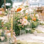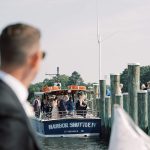She wanted that same wind-in-her-hair feel for the wedding day—a summer celebration on the water. The inspiration was a “garden party-esque cookout,” says Brittany. “Something relaxed, colorful, and simple, while still elevated. We kept asking ourselves, if we could host a few friends for dinner in our hypothetical backyard—we live in a 700-square-foot NYC apartment—what would that look like?” Turns out it looks like St. Michaels’ Chesapeake Bay Maritime Museum, a still-active shipyard with a collection of Chesapeake Bay artifacts, exhibitions, and vessels; loads of flowers; and a nod to Brittany’s home state.