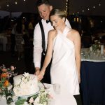 Minutes into the party, Conor accidentally stepped on the train of Brittany’s dress, ripping the bustle. Without missing a beat, Brittany quickly slipped into her short, party dress she was planning to change into a few hours later—a smile never leaving her face. “Guests will feed off the couple’s energy,” she says. “If the couple is having a great time, so will everyone else.”