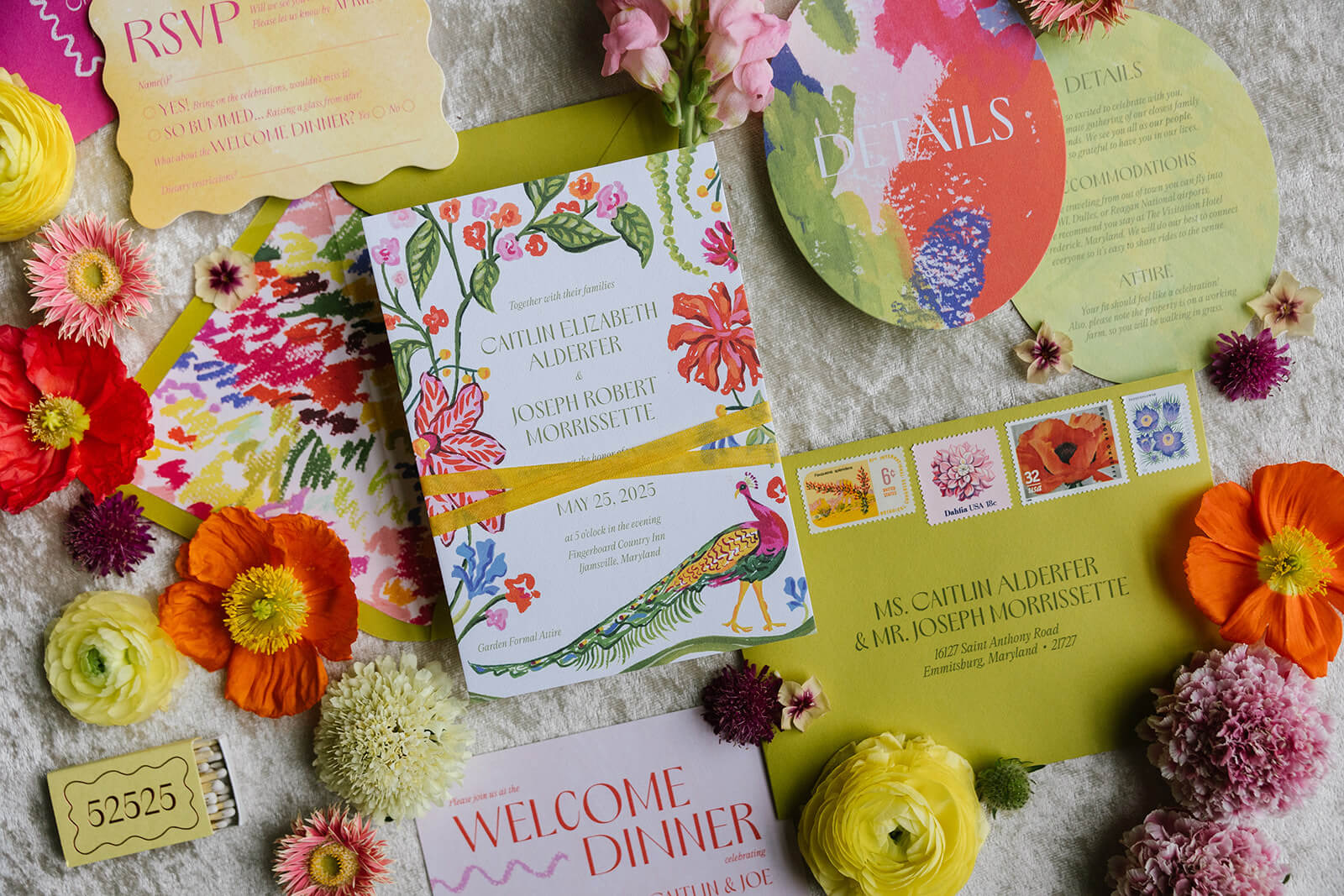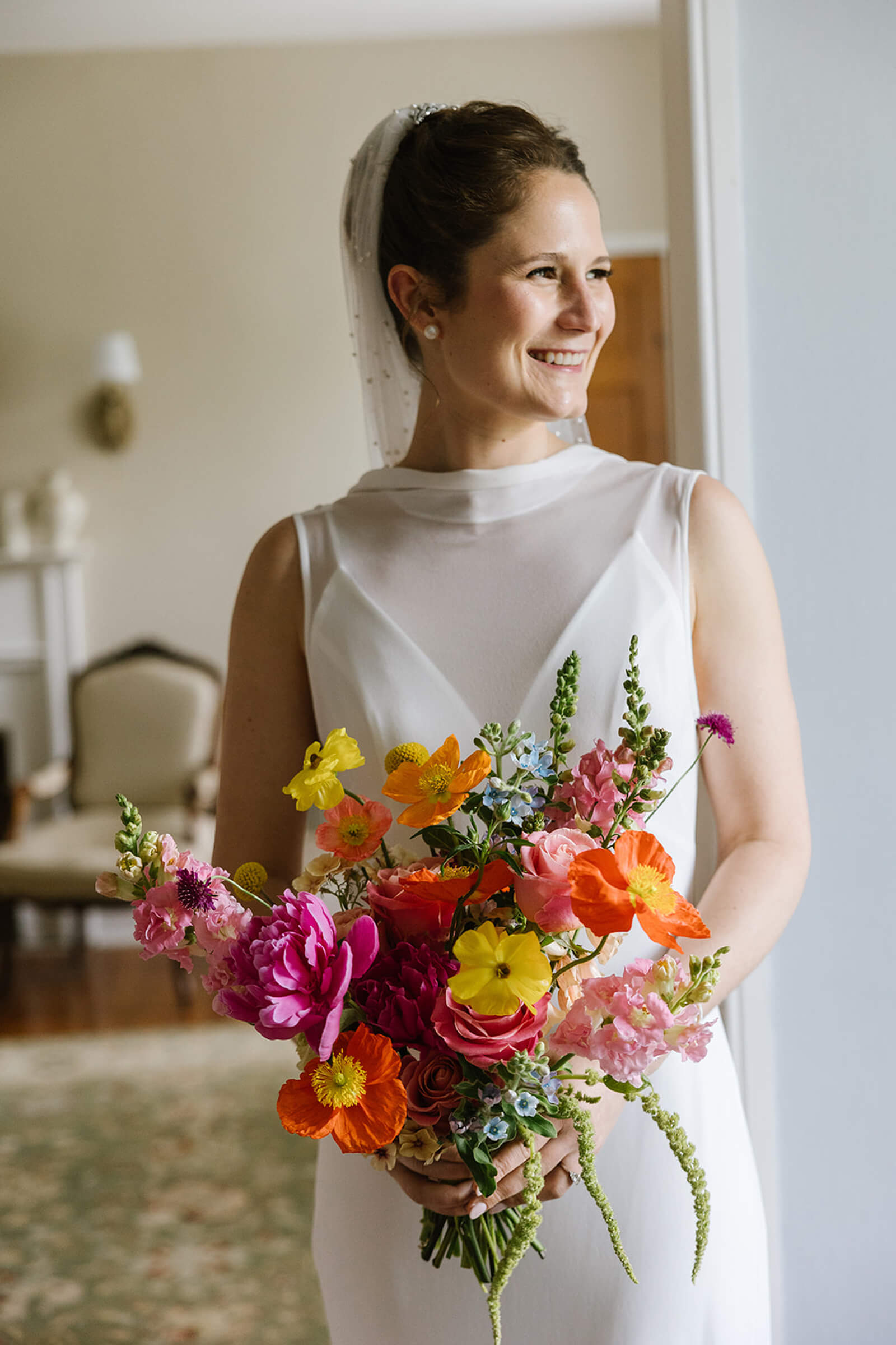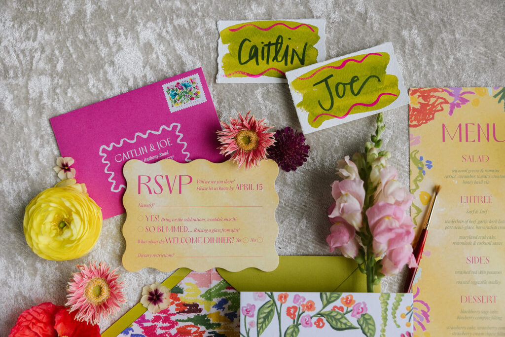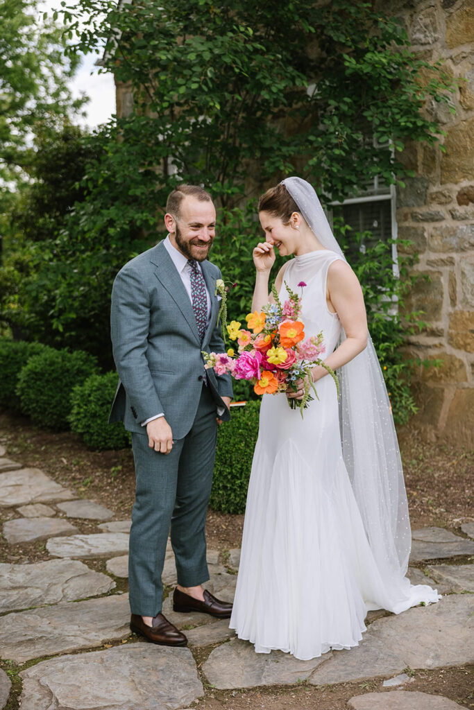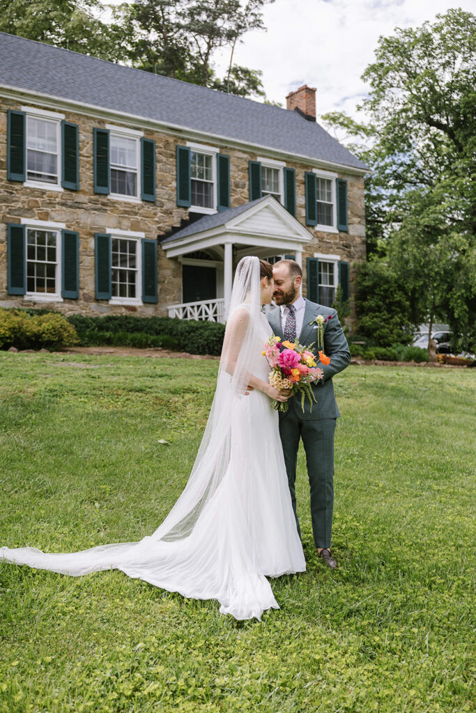 They wanted the same warm and familial feel for their wedding day and found Fingerboard Farm, in Ijamsville, which also had an inn that could house their family for the whole weekend. “I knew it was the perfect spot for our intimate, colorful, family-focused day in nature,” says Caitlin.