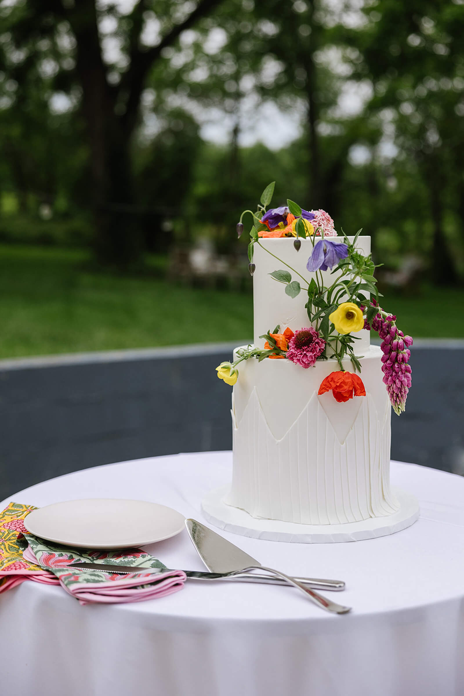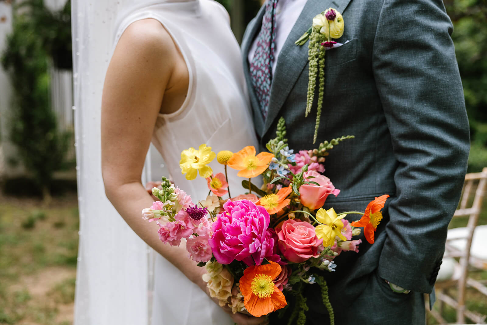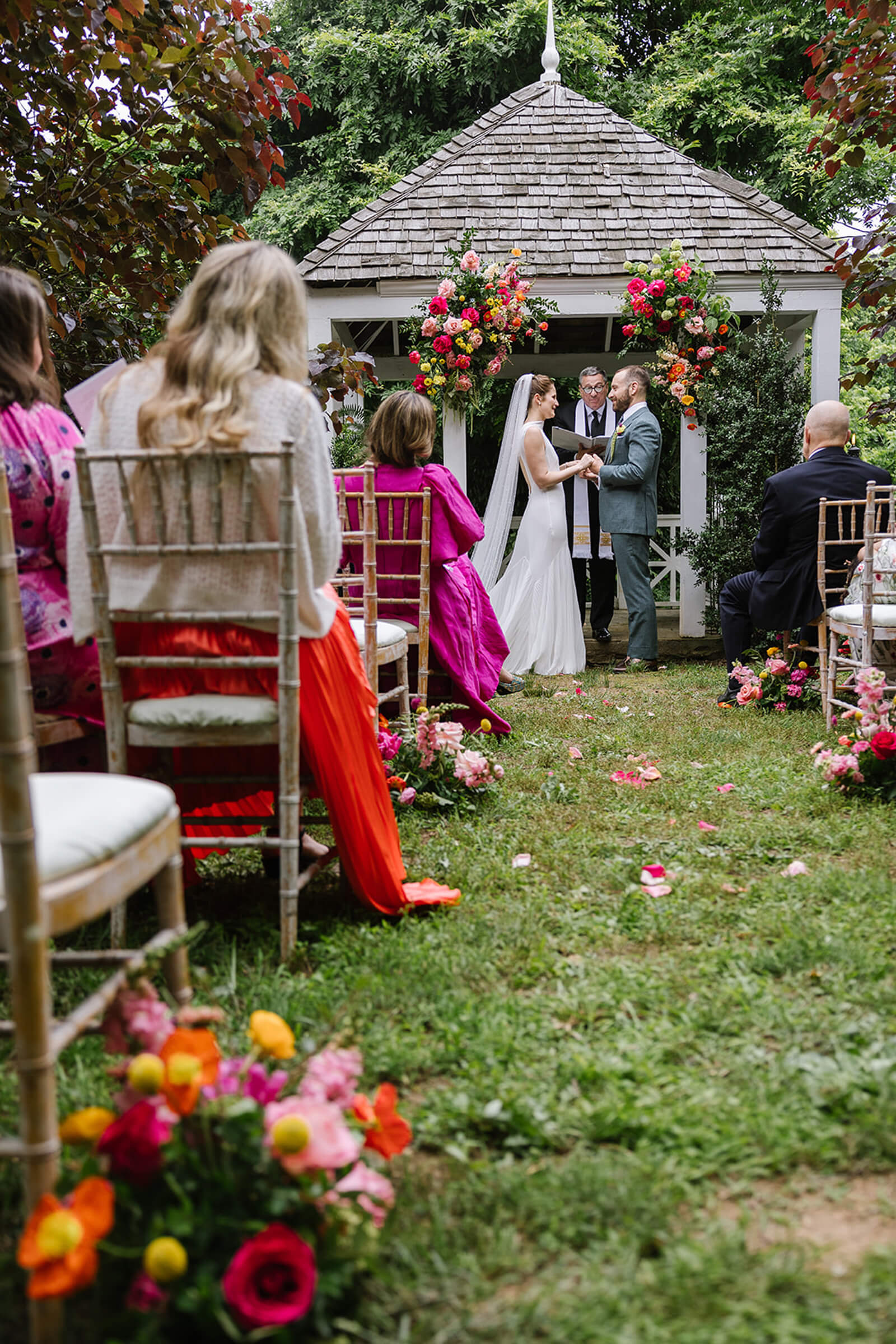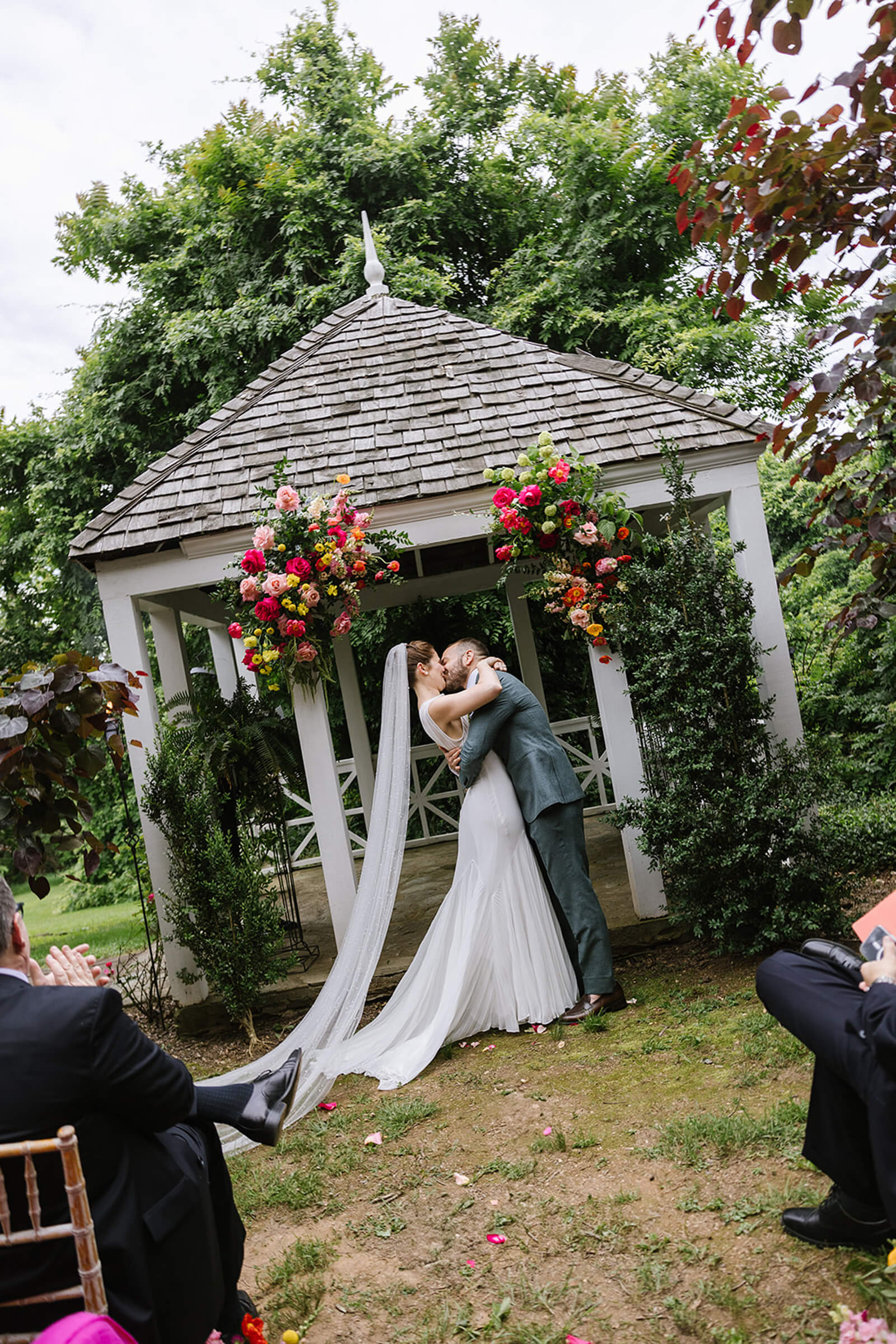 They wanted the same warm and familial feel for their wedding day and found Fingerboard Farm, in Ijamsville, which also had an inn that could house their family for the whole weekend. “I knew it was the perfect spot for our intimate, colorful, family-focused day in nature,” says Caitlin.