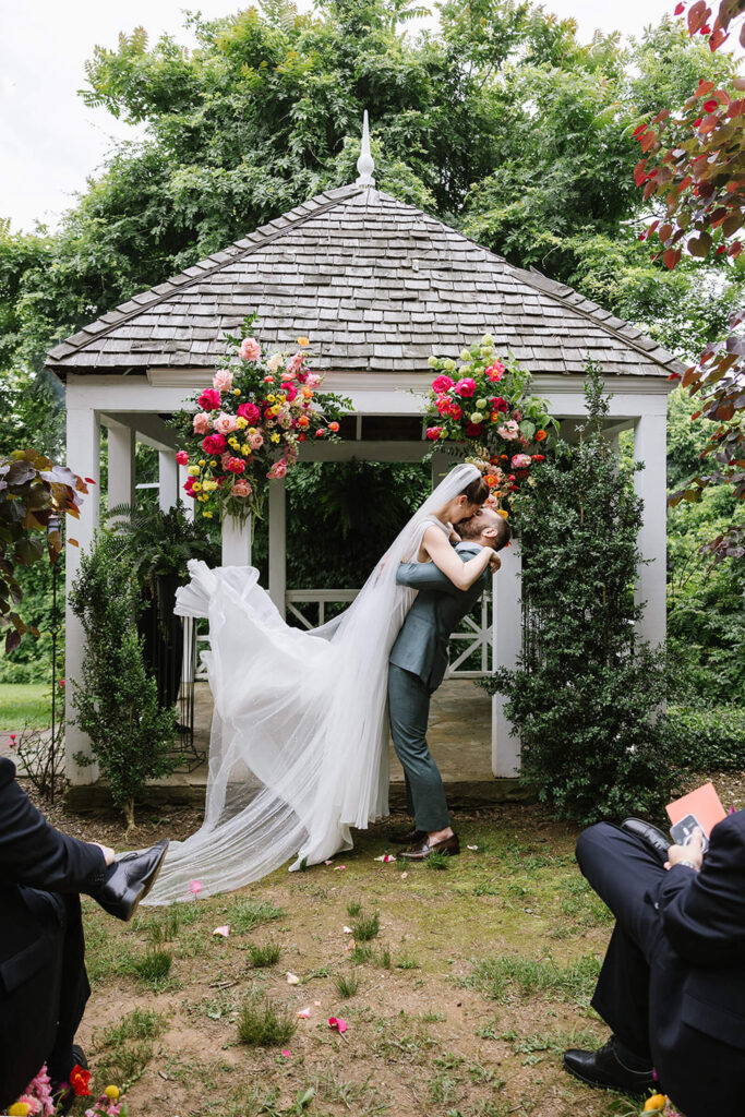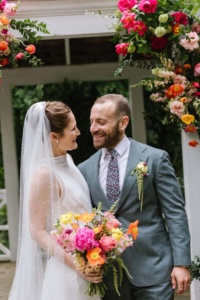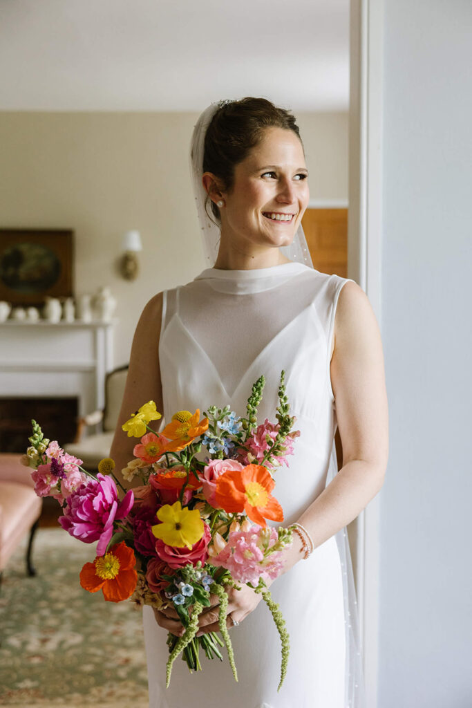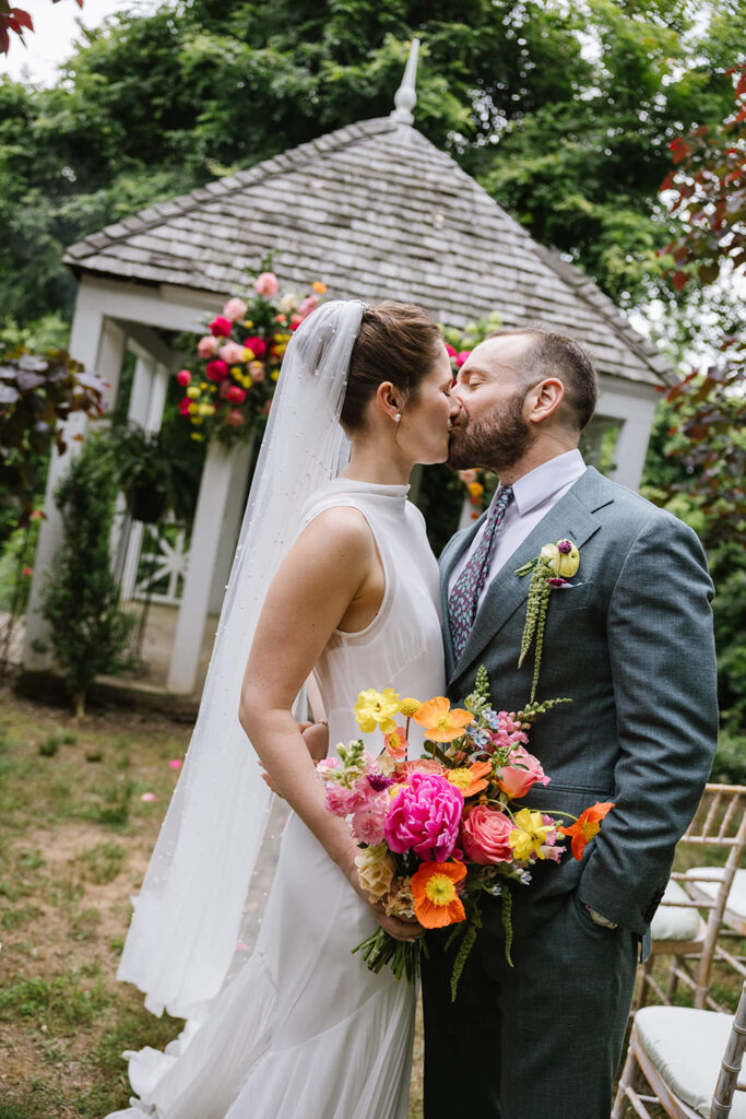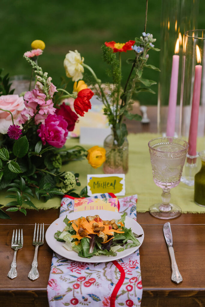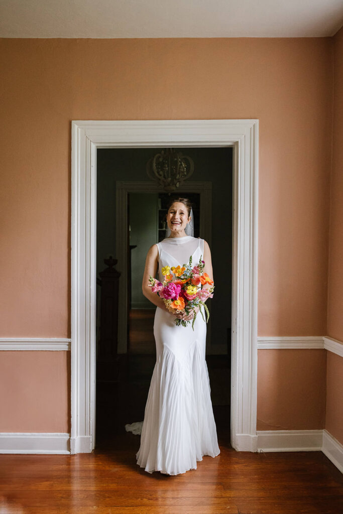 They wanted the same warm and familial feel for their wedding day and found Fingerboard Farm, in Ijamsville, which also had an inn that could house their family for the whole weekend. “I knew it was the perfect spot for our intimate, colorful, family-focused day in nature,” says Caitlin.