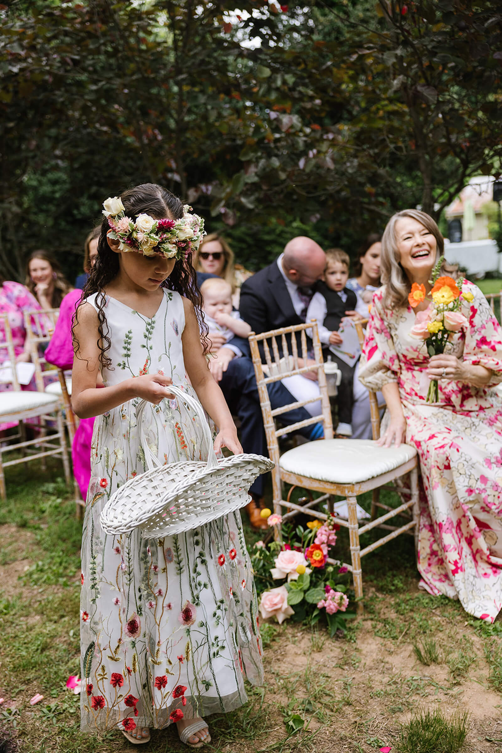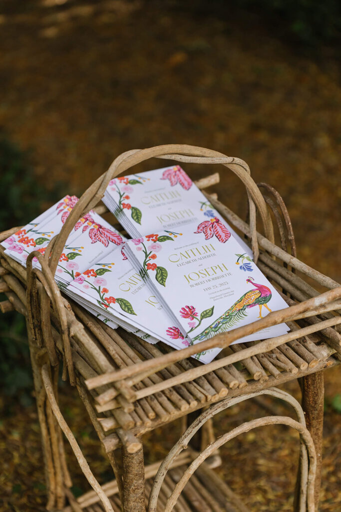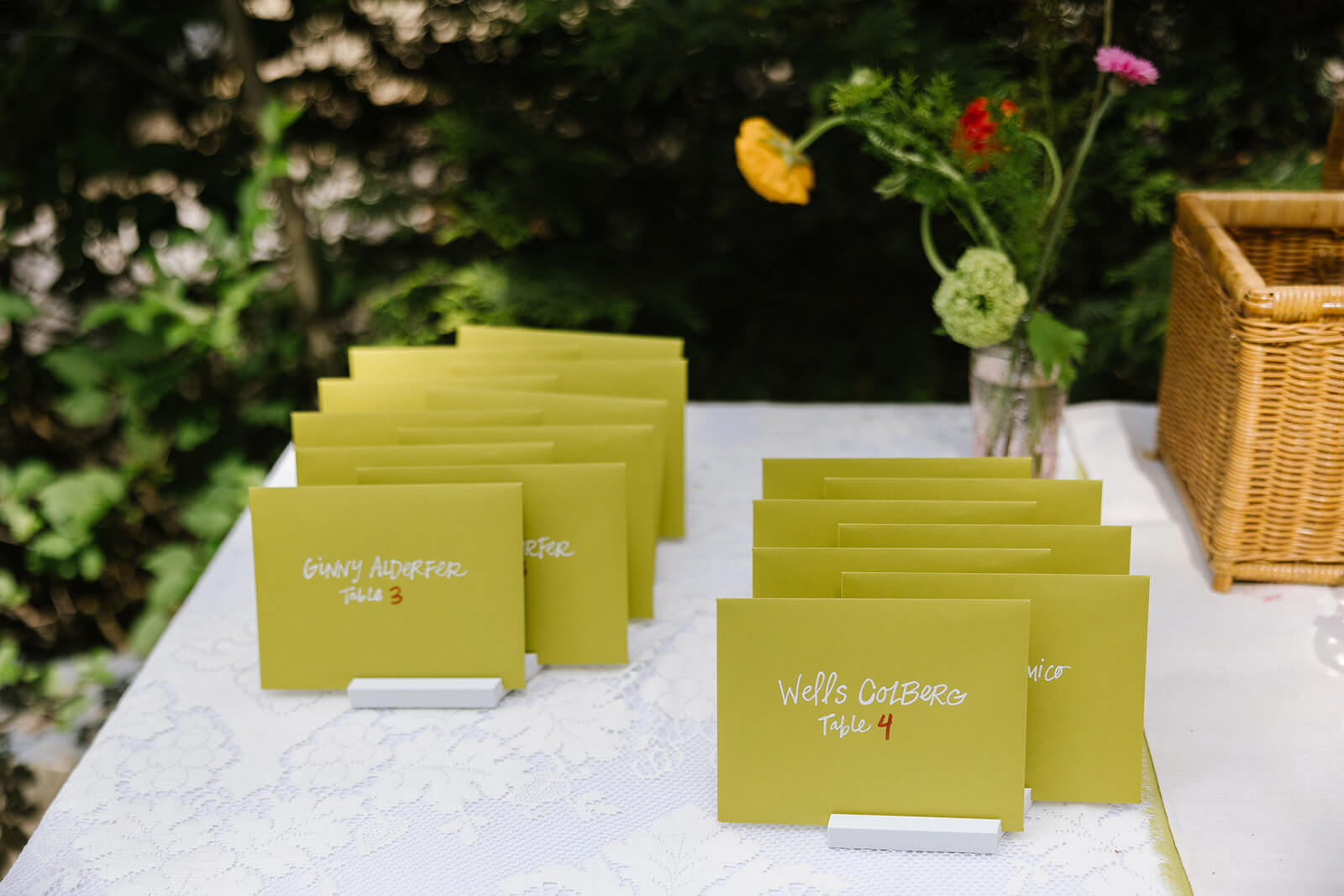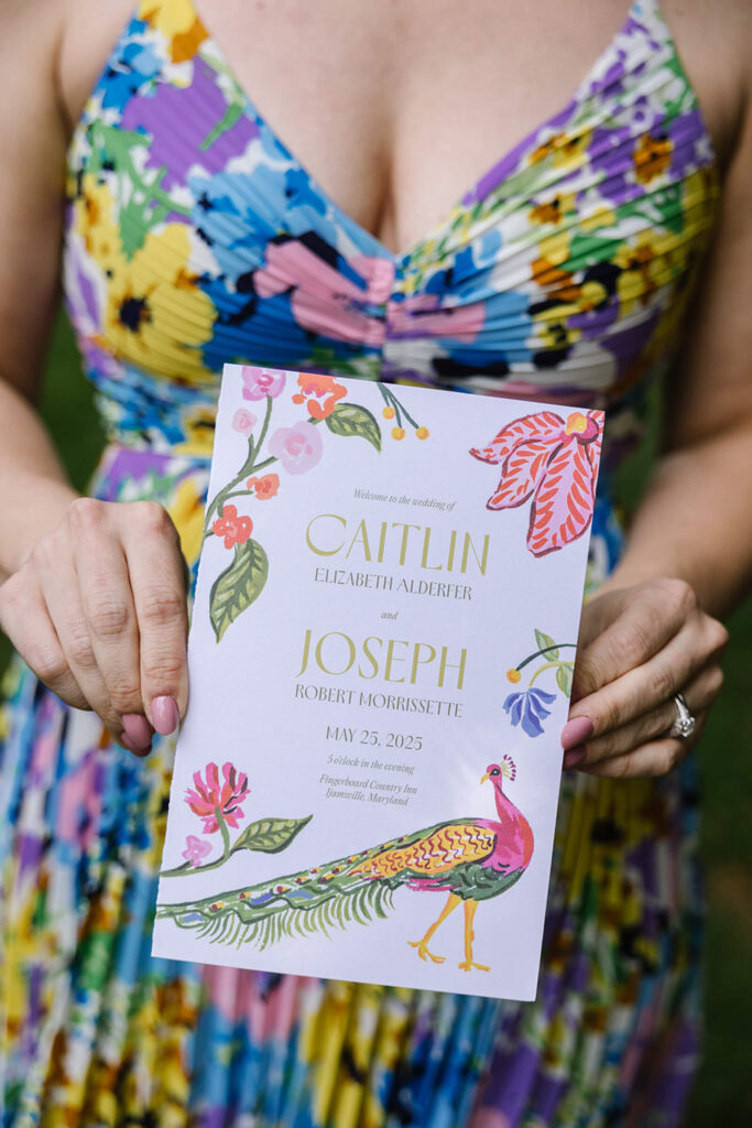 Along with other more traditional animals, Fingerboard Farm also has peacocks, and Caitlin decided they were a perfect emblem to tie into the overall whimsical design of the day. They also used the programs as a small way to highlight the intimacy of the event, by listing all 36 guests in attendance and a few sentences about how they knew them and why they meant so much to them. “We were really able to spend time with everyone there and the whole day felt relaxed and flexible,” she says.