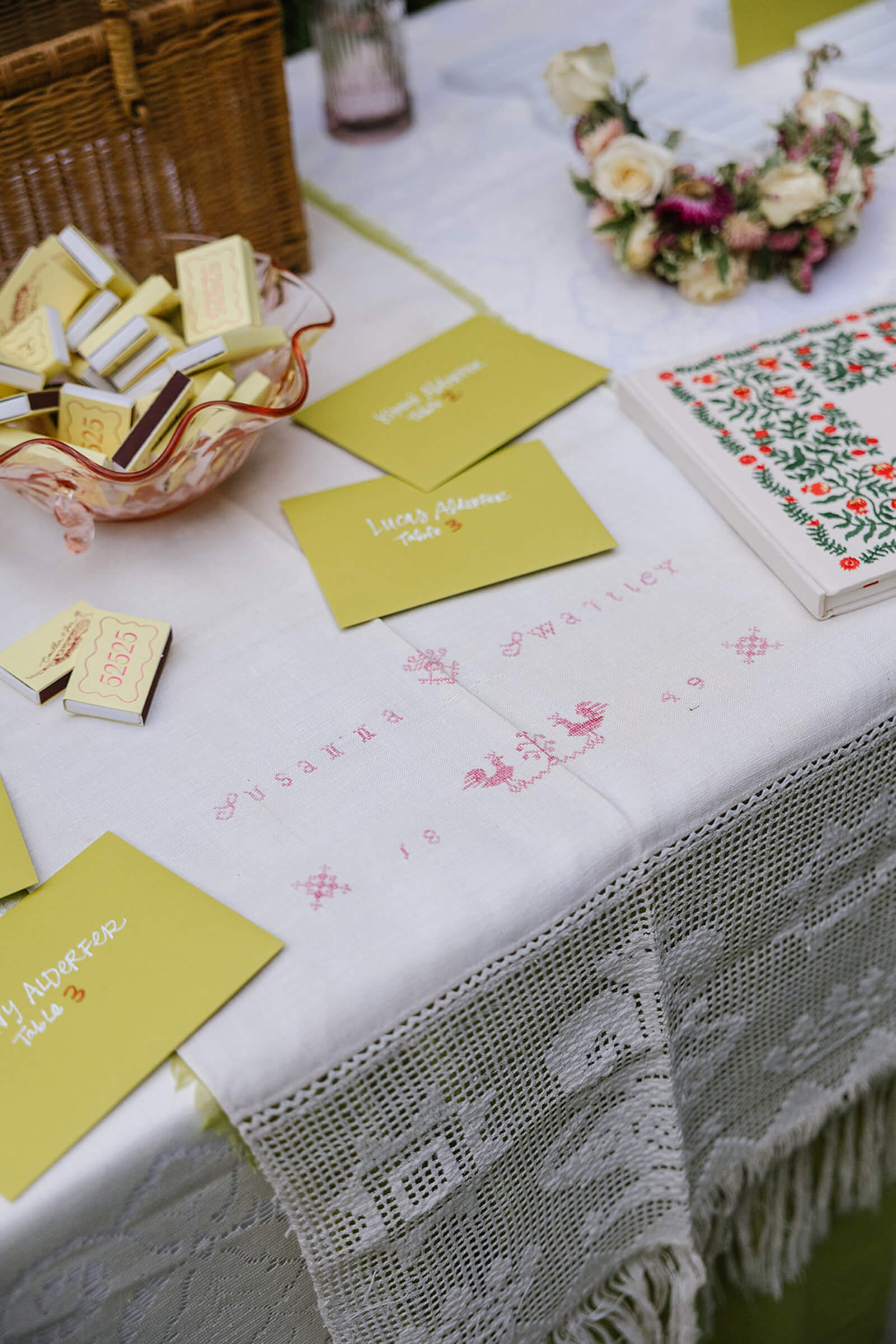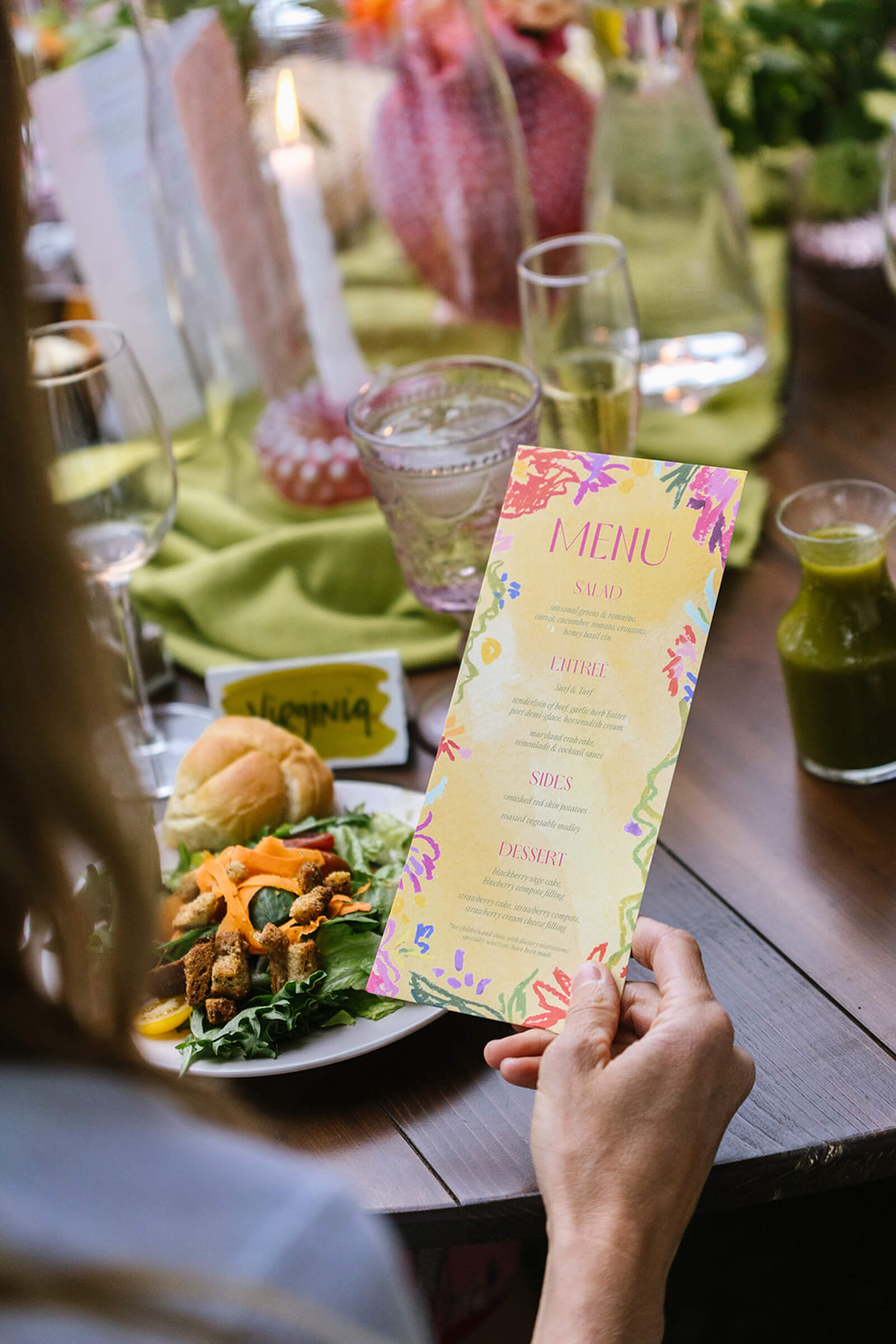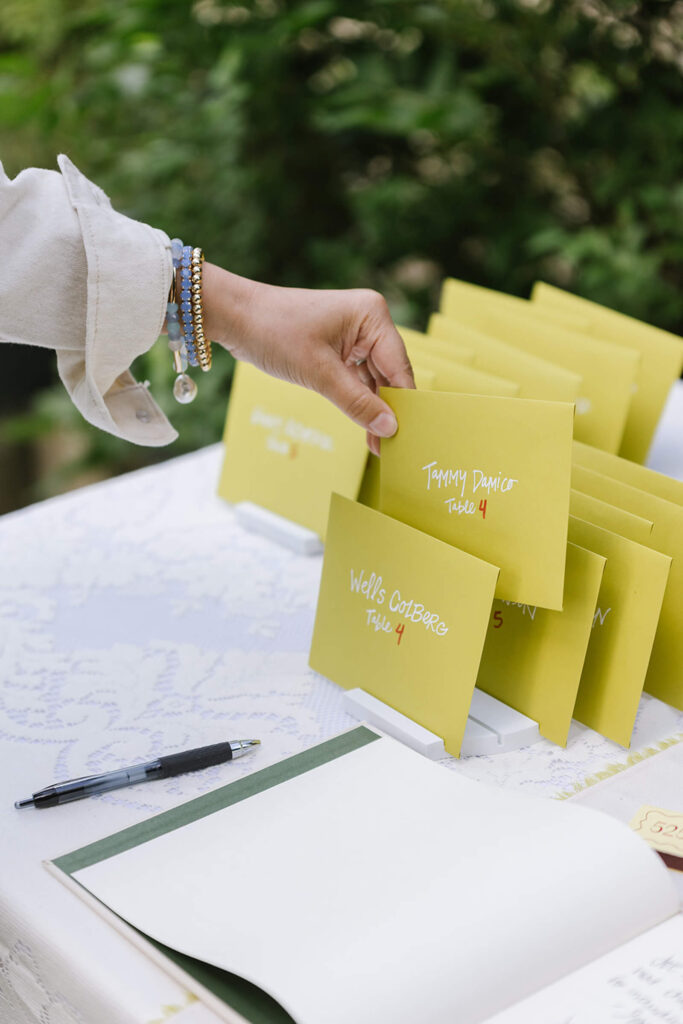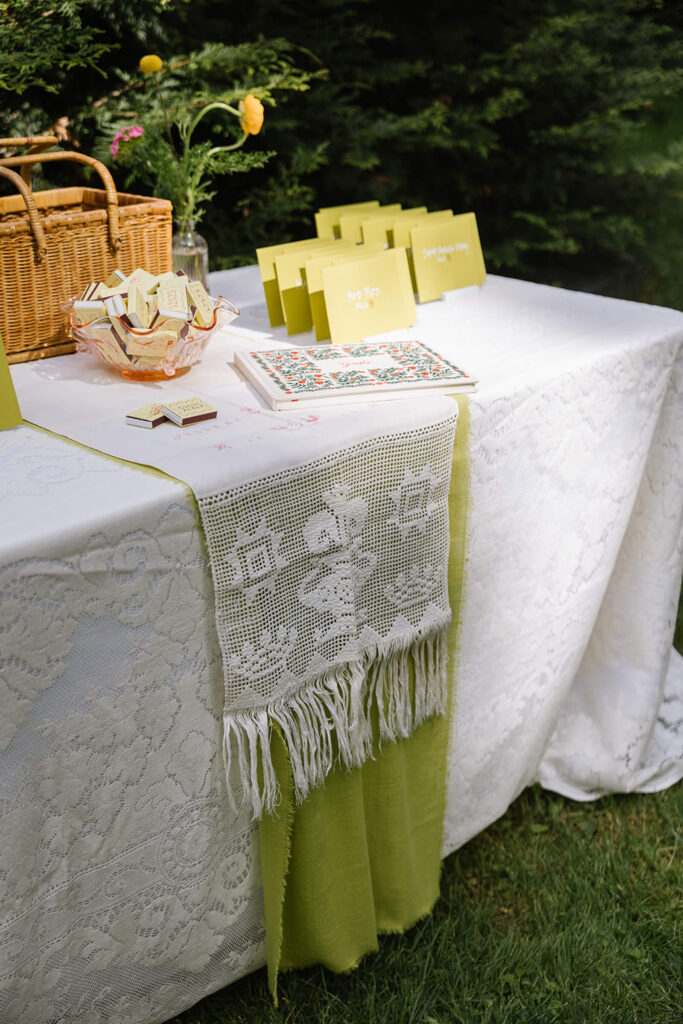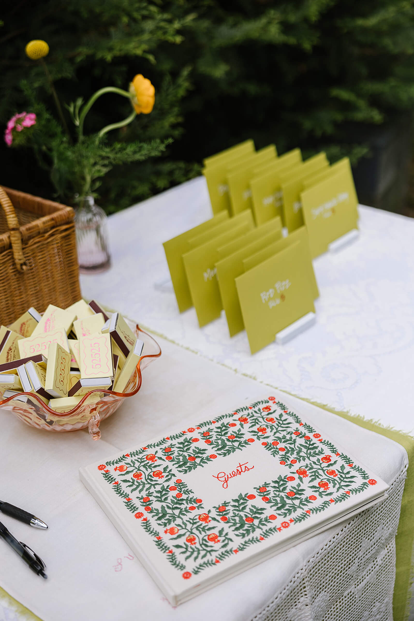 Along with other more traditional animals, Fingerboard Farm also has peacocks, and Caitlin decided they were a perfect emblem to tie into the overall whimsical design of the day. They also used the programs as a small way to highlight the intimacy of the event, by listing all 36 guests in attendance and a few sentences about how they knew them and why they meant so much to them. “We were really able to spend time with everyone there and the whole day felt relaxed and flexible,” she says.