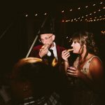 When it came time for Billy Schmidt and Rebecca Greene to plan their wedding, this cosmopolitan couple felt compelled to create a weekend worthy of their friends and family coming from all over to see them get hitched. “We knew we wanted to do something different. We have both lived in multiple states in the past 10 years and have friends from all over the world, so we wanted to make it a fun weekend,” says Rebecca, who met Billy while working at The San Diego Children’s Discovery Museum and got engaged to him in Olympia, Washington. “We both love Wes Anderson movies and were inspired by Moonrise Kingdom.” (In fact, one of their first dates was to see that very movie.) So they decided to have a summer camp wedding. Located on 140 acres on the Chesapeake Bay in Stevensville, Camp Wright—with its outdoor chapel, open-air pavilion, dining hall, and wooded cabins for overnight guests—was exactly what they were looking for. “When we found Camp Wright, we knew it was perfect, says Rebecca. “We have a lot of family and friends with kids, and Billy is a giant kid, too, so we loved all the activities and the idea of everyone staying in the cabins.” That meant, in addition to wedding festivities, guests could kayak, try archery, and take nature walks. Plus, Camp Wright offered full creative control for the couple. They could DIY their little hearts out—perfect for this artist and graphic designer duo. They created everything, from the save the dates and invitations (including a packing list) to the ceremony backdrop, table numbers, flags, pillows, and signage. Billy even roasted a whole pig that was served at the reception. “It was our way of making sure the day felt like us,” Rebecca says. The night before the wedding, Rebecca laid awake in her cabin (on the opposite side of camp from Billy) and made the trek to the bathroom around 5 a.m. “As I was walking across camp, I saw Billy up and starting to cook the pig. I ran all the way across the camp and gave him a huge hug. He was exactly who I needed to see at that moment.” The rest of the day was magical. Guests waved homemade flags as Rebecca and Billy walked down the aisle as husband and wife. Each table was full of small details that made the reception tent look magical, and the air was just cool enough that night that Rebecca could slip on the leather coat she had designed with the words “To the Moon & Back” over her wedding dress, a show-stopping gown covered with an infinite number of gold and silver sequin stars. The entire weekend emulated the love story of Rebecca and Billy. “We really wanted it to feel like us and not just something we pulled off Pinterest,” says Rebecca. “That doesn’t mean you have to handmake everything—we’re just crazy—but adding our personal touches made the day even more special.”