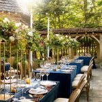 Wedding Design Inspiration Every detail started with my dress. I fell in love with Vera Wang’s Fall 2019 Collection before we even got engaged. When I tried on Marthe at Carine’s Bridal Atelier, I immediately knew it was the one. Vera’s line that season was inspired by King Louis XIV and Versailles. Knowing that, we pulled commanding details in the design but also wanted to maintain a degree of softness. We created this balance by juxtaposing things like a navy velvet tablecloth and tortoiseshell flatware against soft garden roses in the centerpieces or how my bouquet included deep burgundy and navy berries but was wrapped in soft ivory silk ribbon covered in lace from my mother’s wedding gown.
