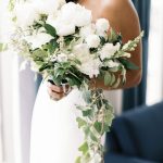 When she got back to Baltimore, Dallas realized she didn’t have a clear vision for the wedding. “I never considered myself a ‘Pinterest bride,’” says Dallas, now an injector nurse at Pura Vida Medspa & Cosmetic Laser Center. “I didn’t have a board waiting for me after the engagement with pages and pages of wedding designs but once I found our venue, I knew exactly what I wanted.” She loved the industrial feel of the Winslow—with its rooftop views of M&T Bank Stadium—and chose black and white as her main hues, along with a darker golden taupe for her nine bridesmaids. “I knew I wanted lots and lots of candles, and lush greenery to soften the space while still embracing the industrial feel and Baltimore edge,” she says.
